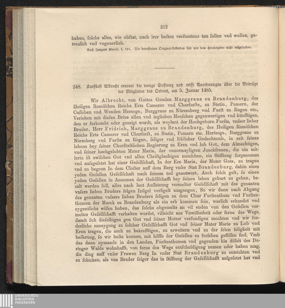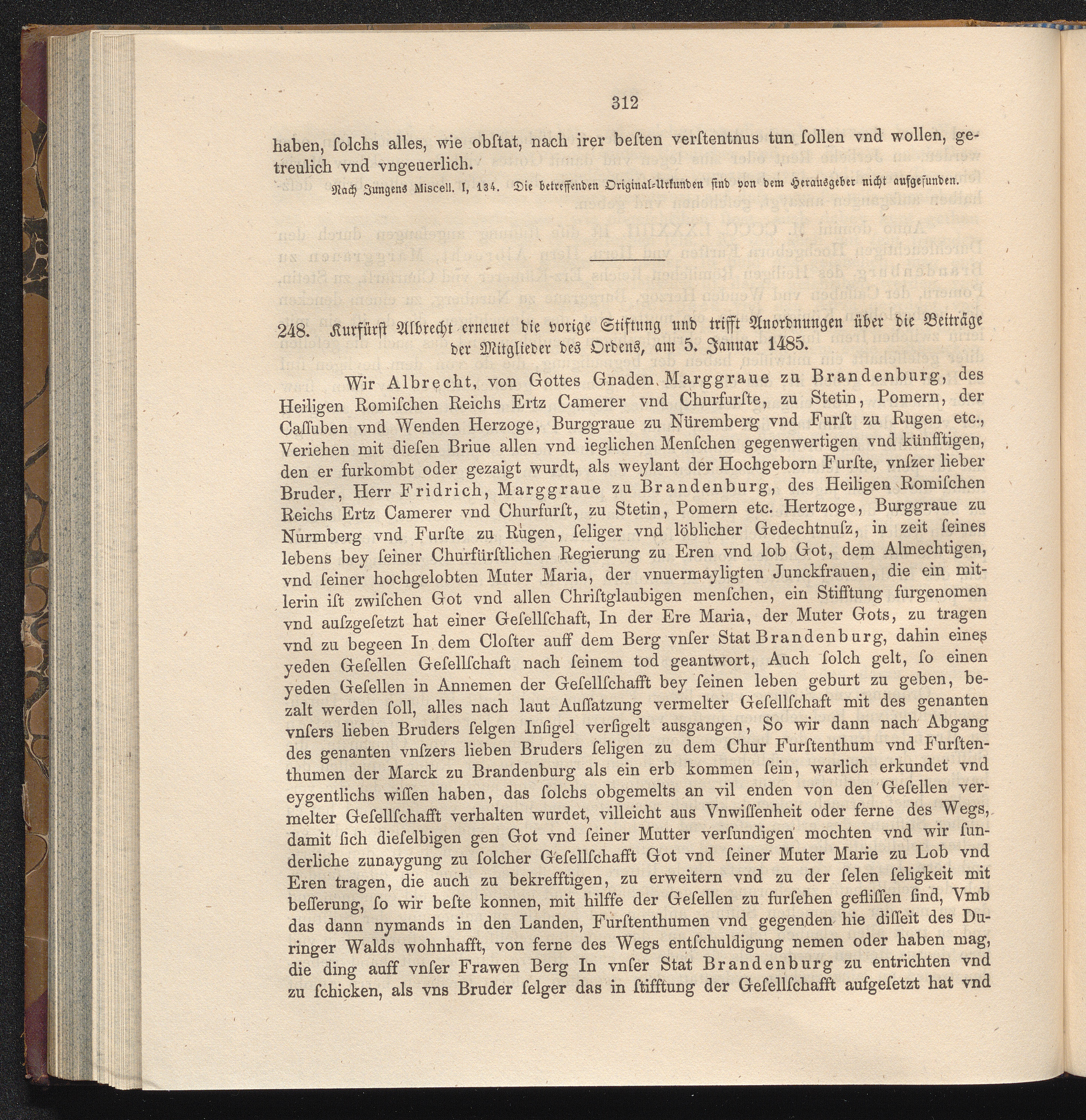 248. Kurfürst Albrecht erneuet die vorige Stiftung und trifft Anordnungen über die[...]