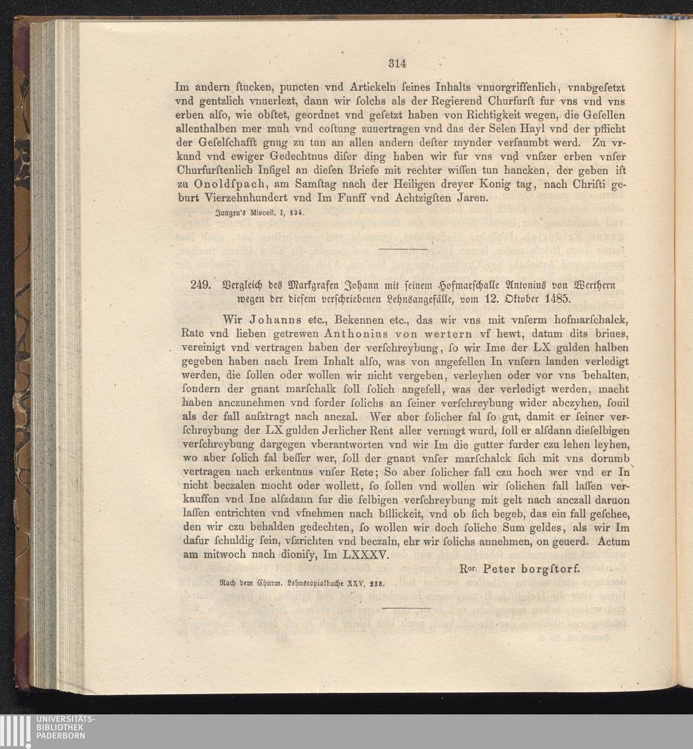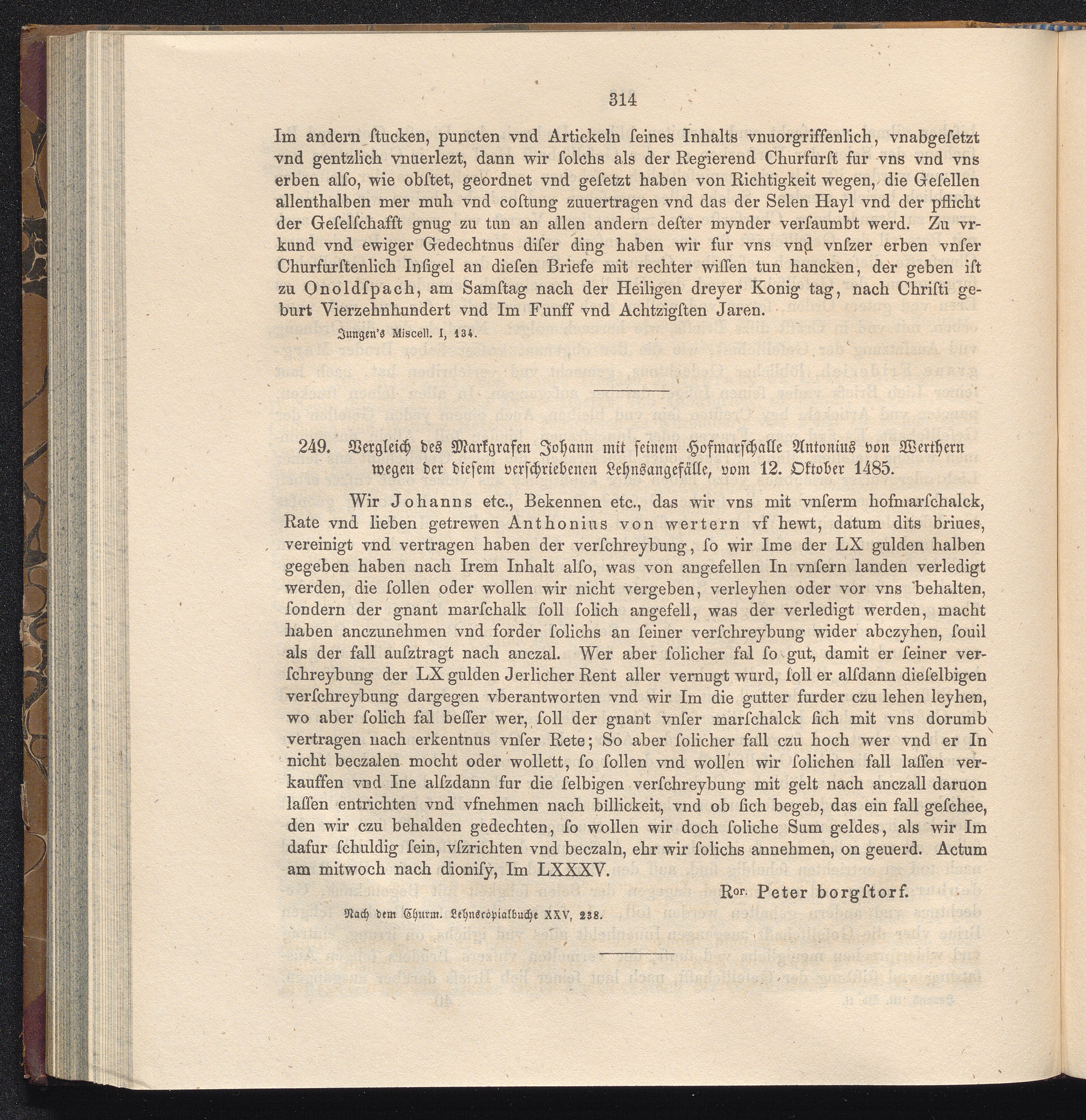249. Vergleich des Markgrafen Johann mit seinem Hofmarschalle Antonius von Werthern[...]