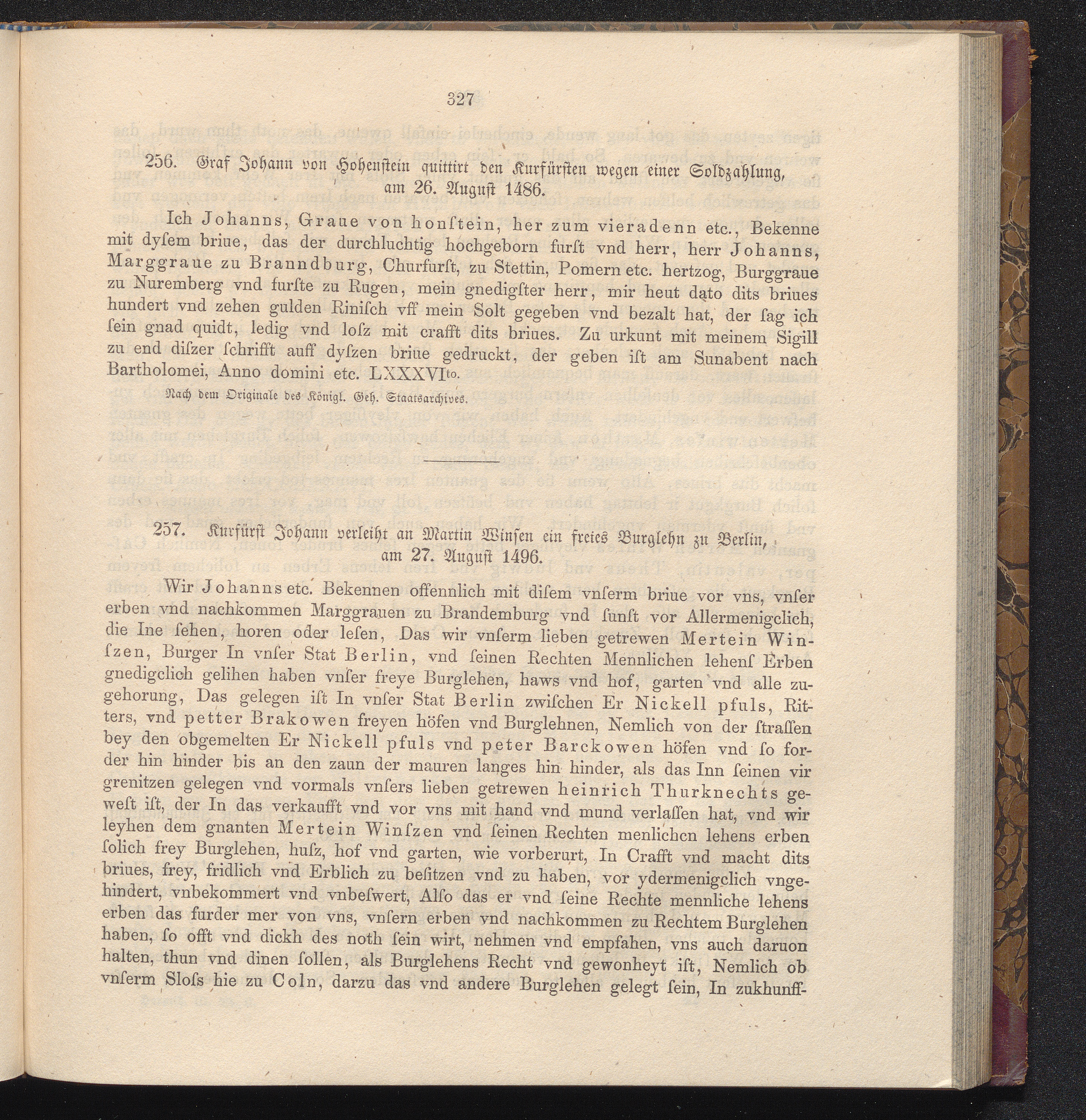 256. Graf Johann von Hohenstein quittirt den Kurfürsten wegen einer Goldzahlung,[...]