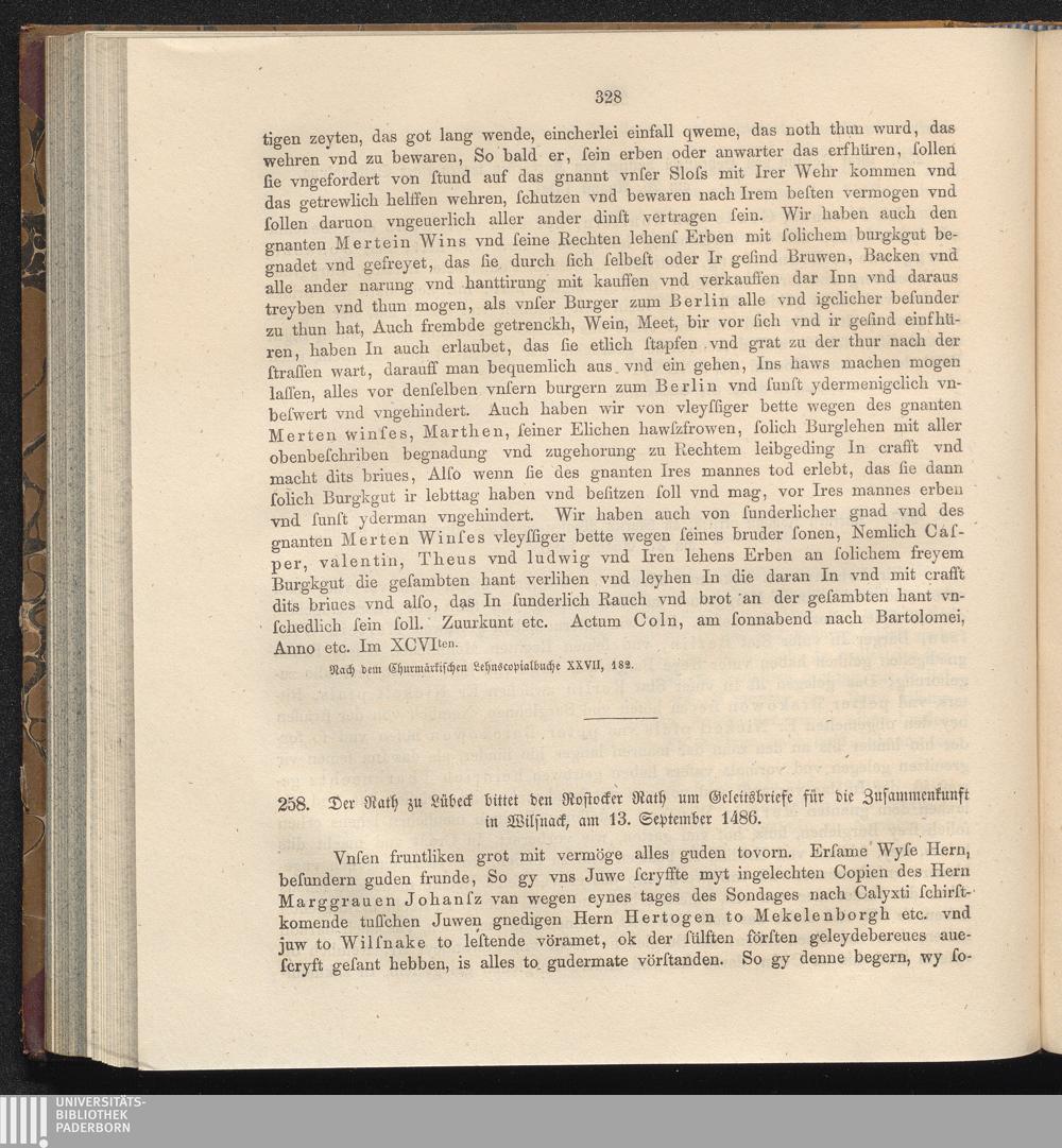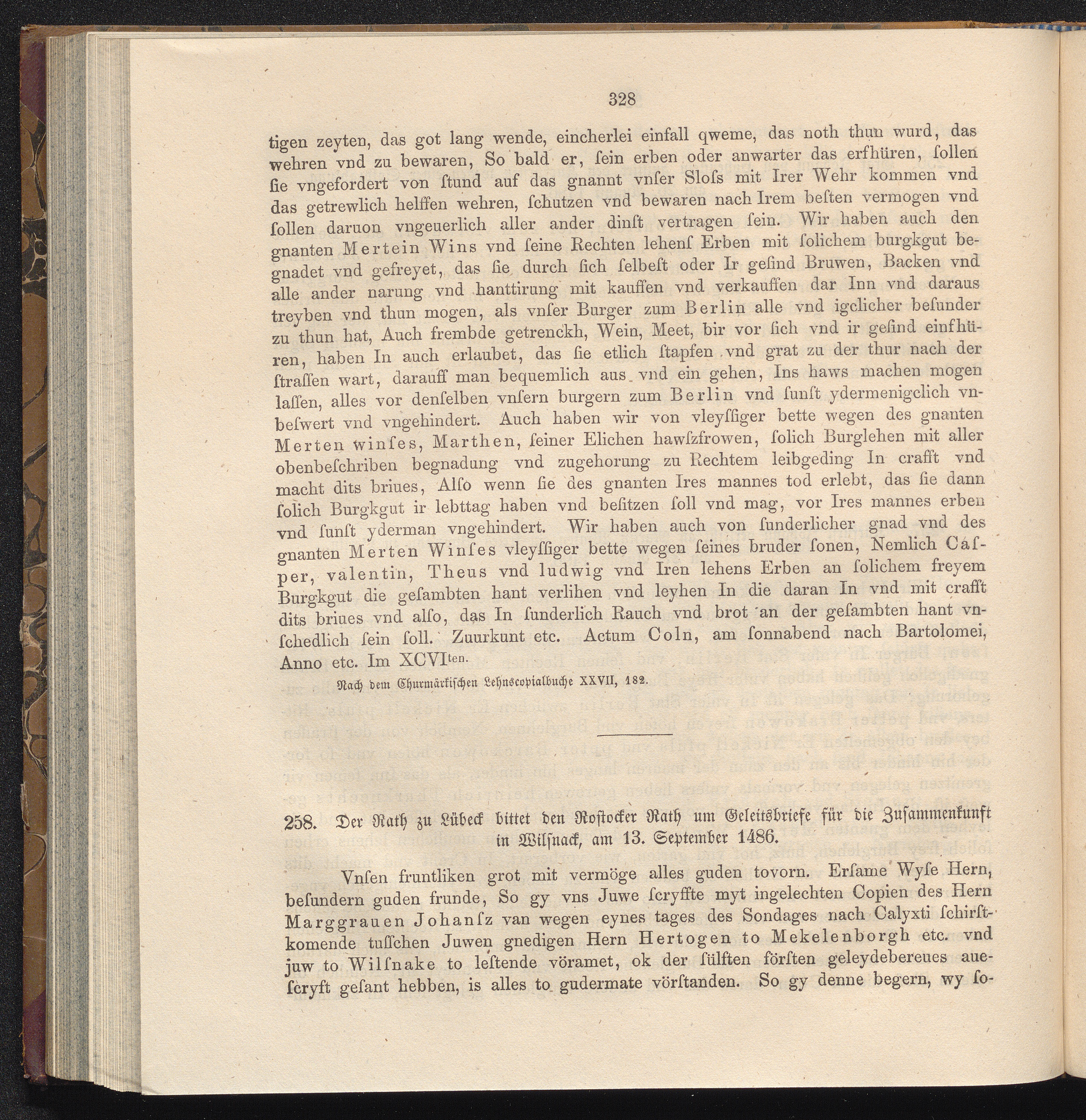 258. Der Rath zu Lübeck bittet den Rostocker Rath um Geleitsbriefe für die Zusammenkunft[...]