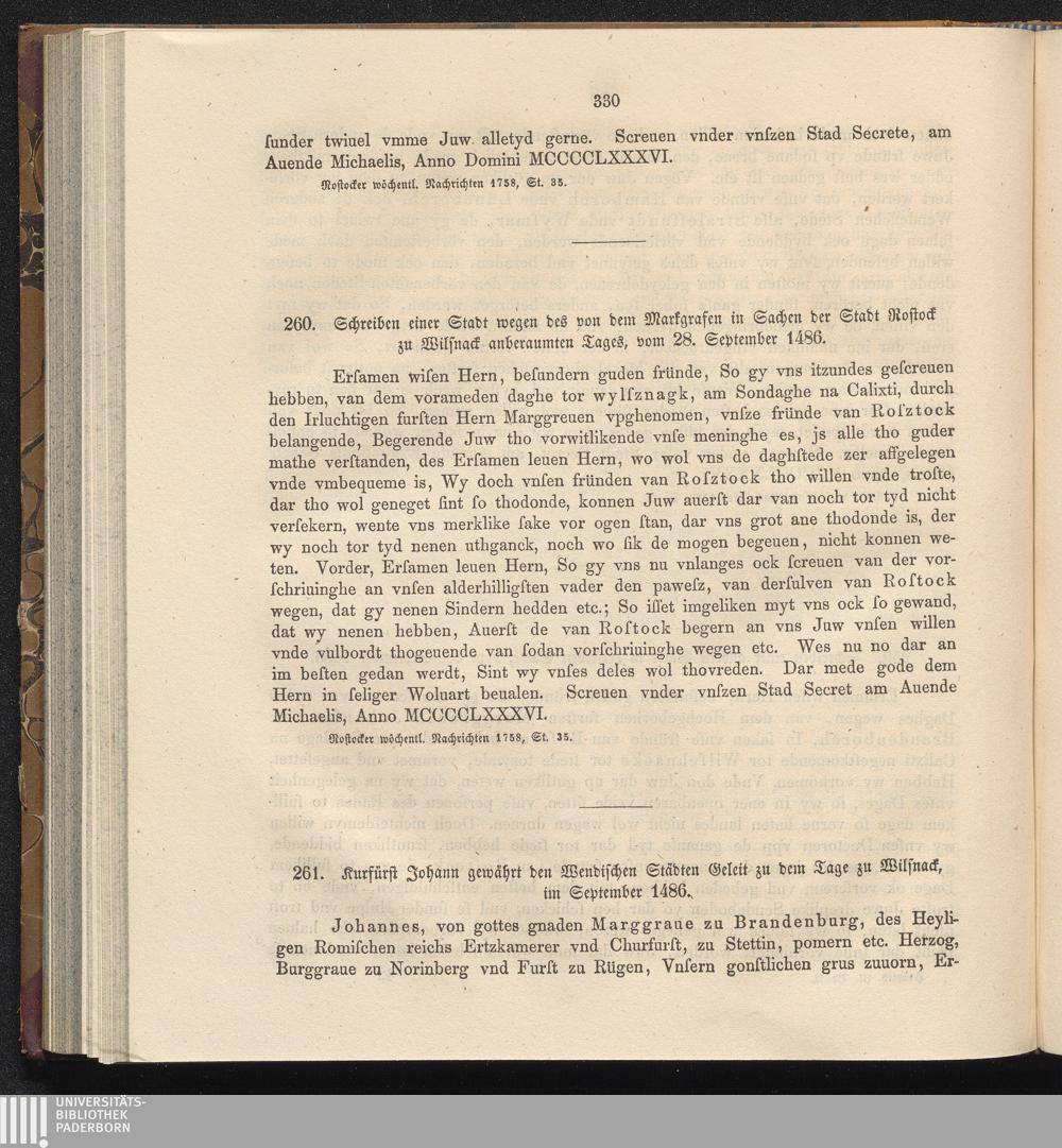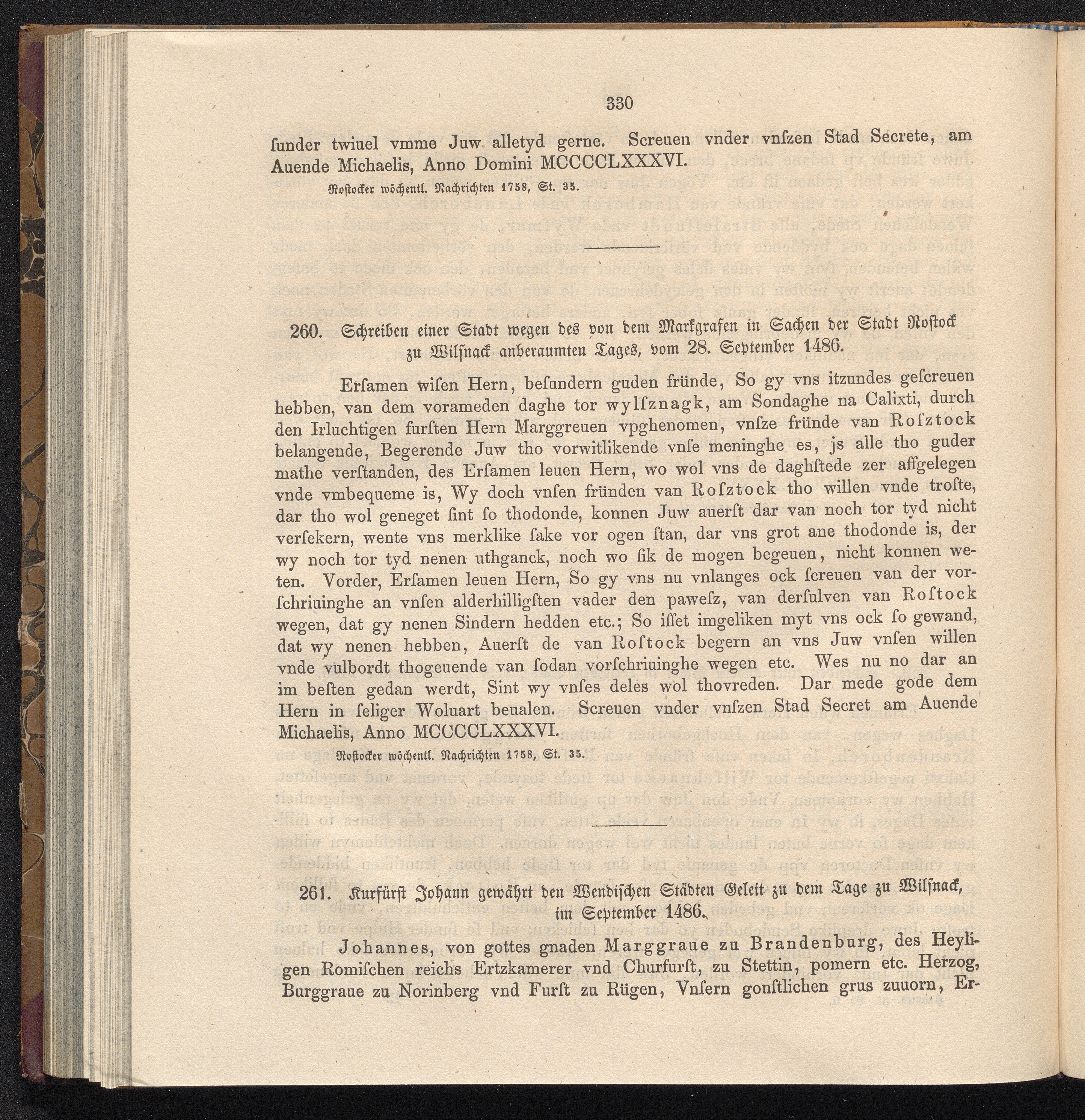 260. Schreiben einer Stadt wegen des von dem Markgrafen in Sachen der Stadt Rostock[...]