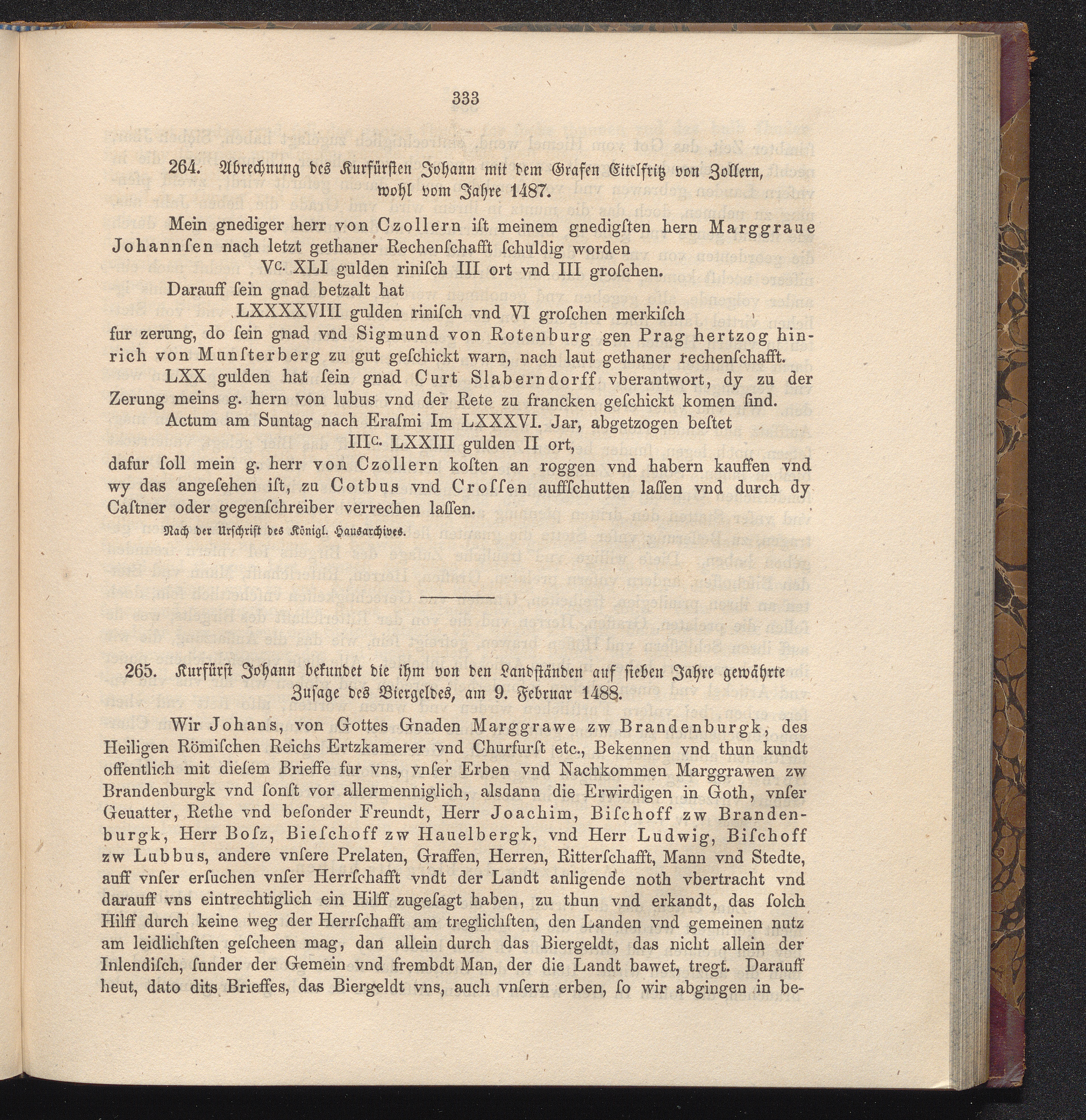 264. Abrechnung des Kurfürsten Johann mit dem Grafen Eitelfritz von Zollern, wohl[...]