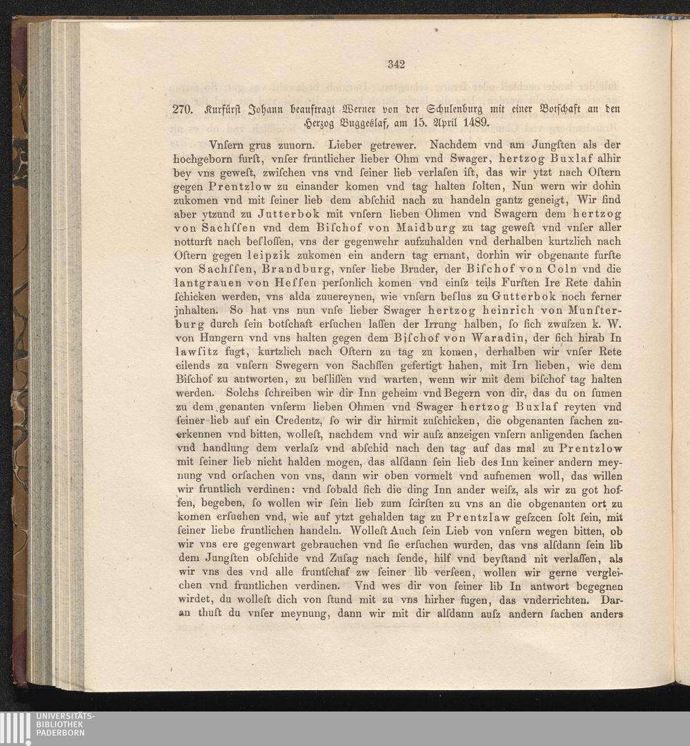 270. Kurfürst Johann beauftragt Werner von der Schulenburg mit einer Botschaft an[...]