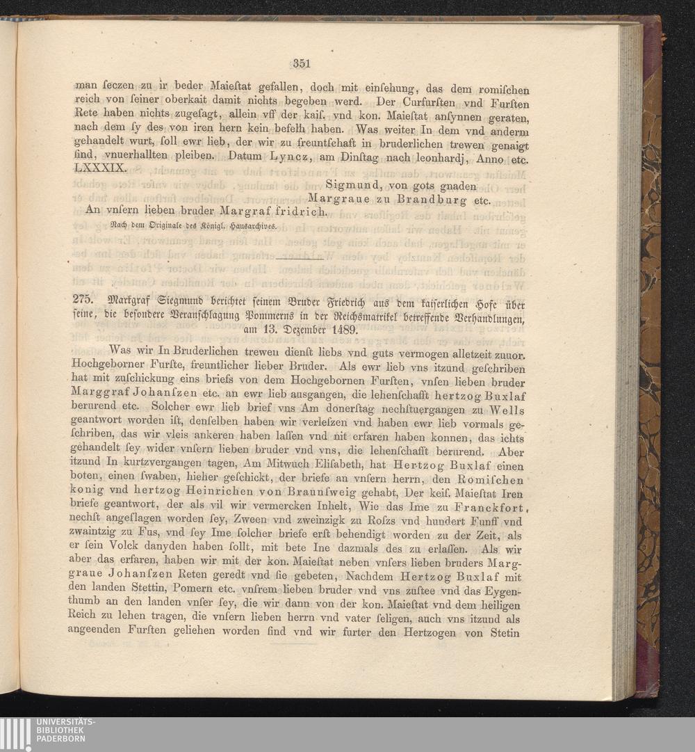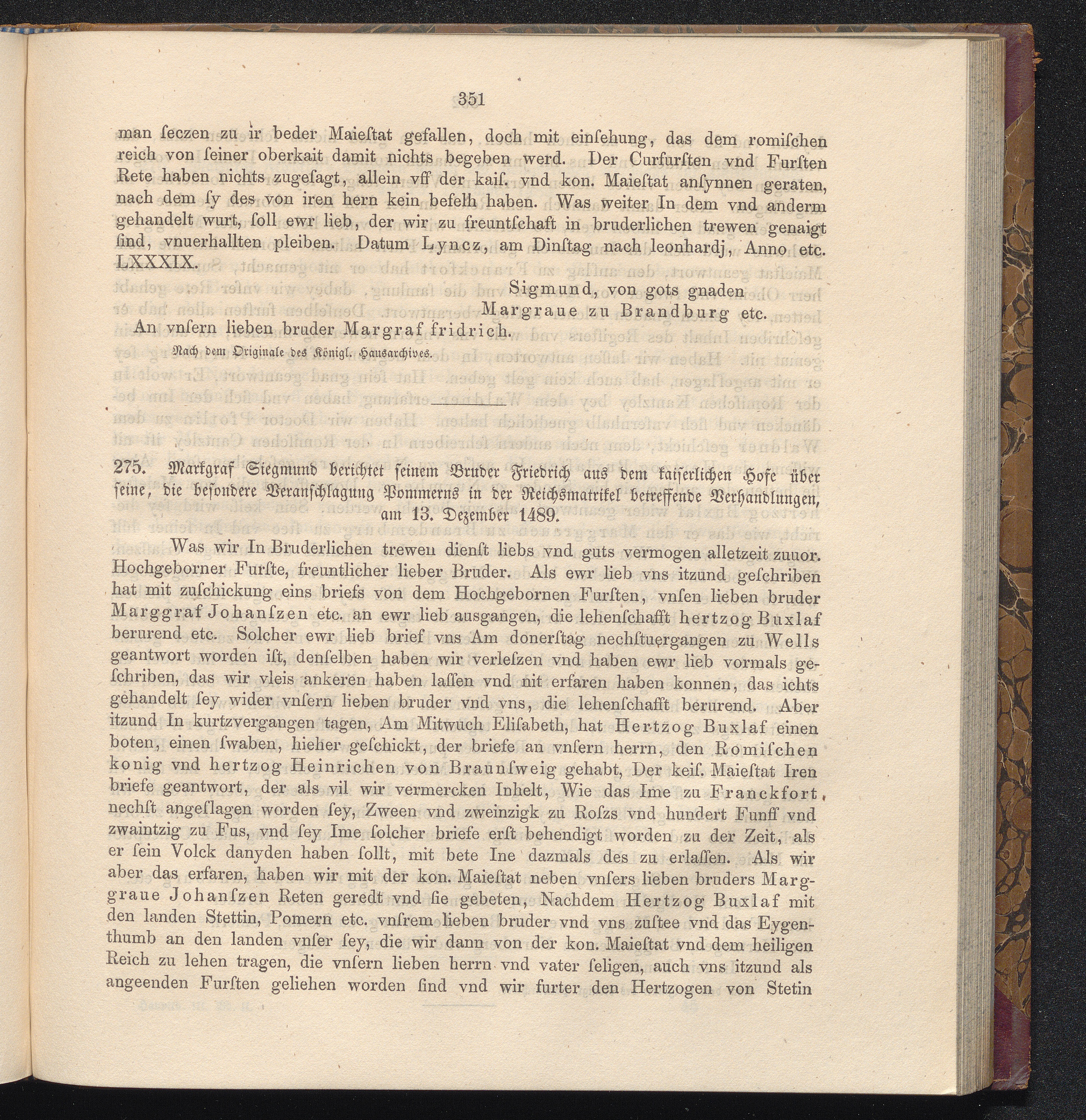 275. Markgraf Siegmund berichtet seinem Bruder Friedrich aus dem kaiserlichen Hofe[...]
