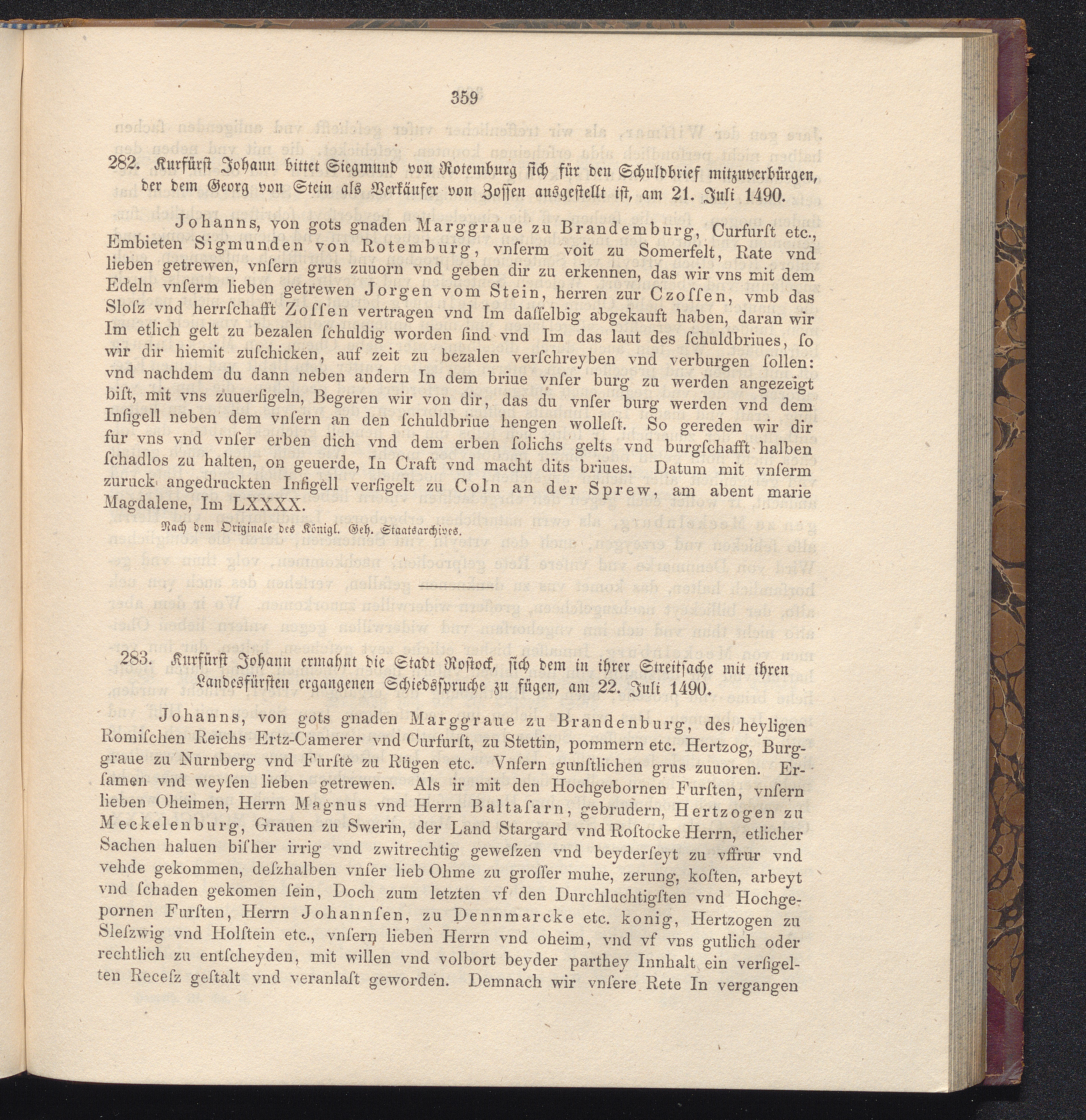 282. Kurfürst Johann bittet Siegmund von Rotenburg sich für den Schuldbrief mitzuverbürgen,[...]