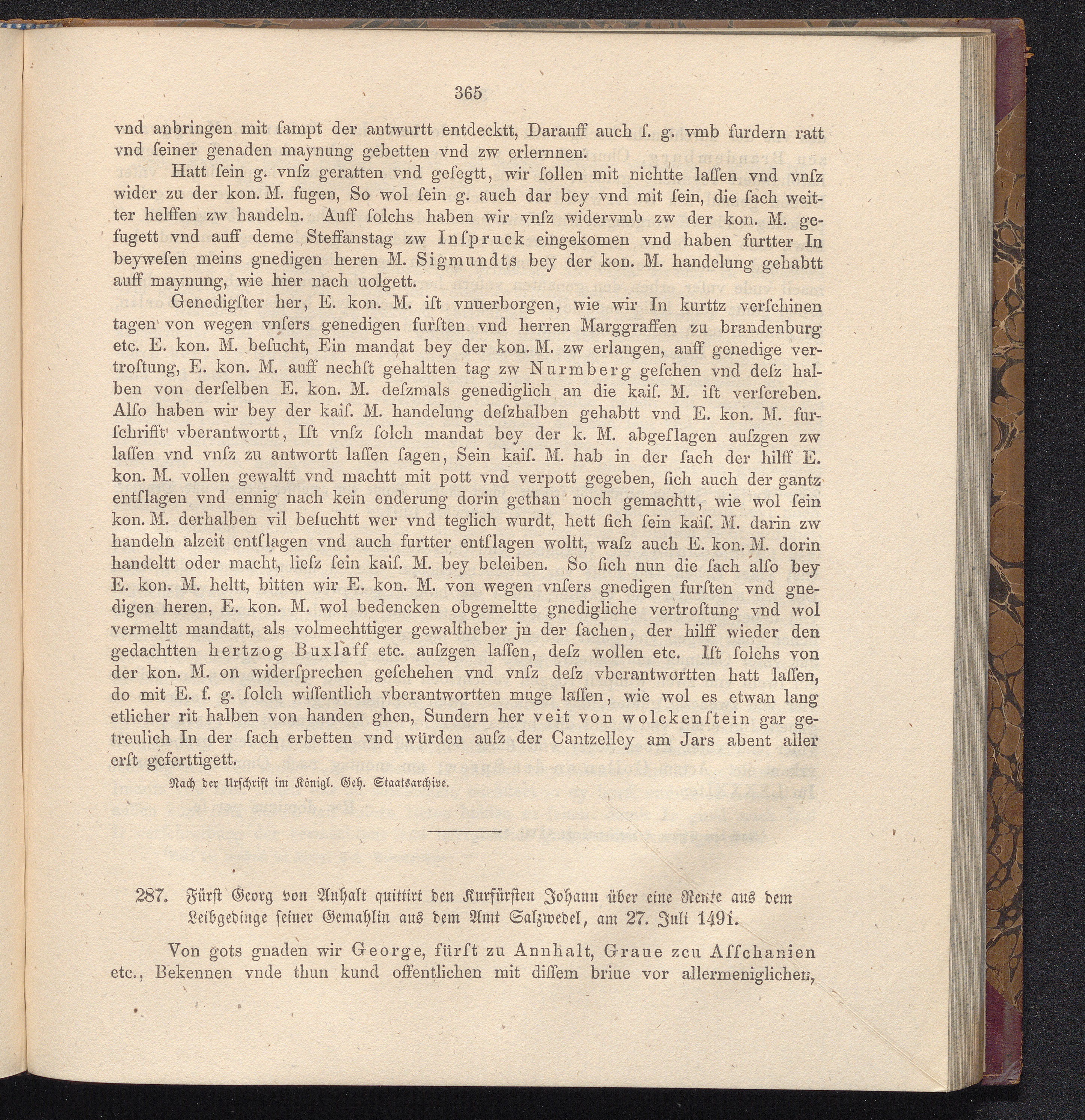 287. Fürst Georg von Anhalt quittirt den Kurfürsten Johann über eine Rente aus dem[...]