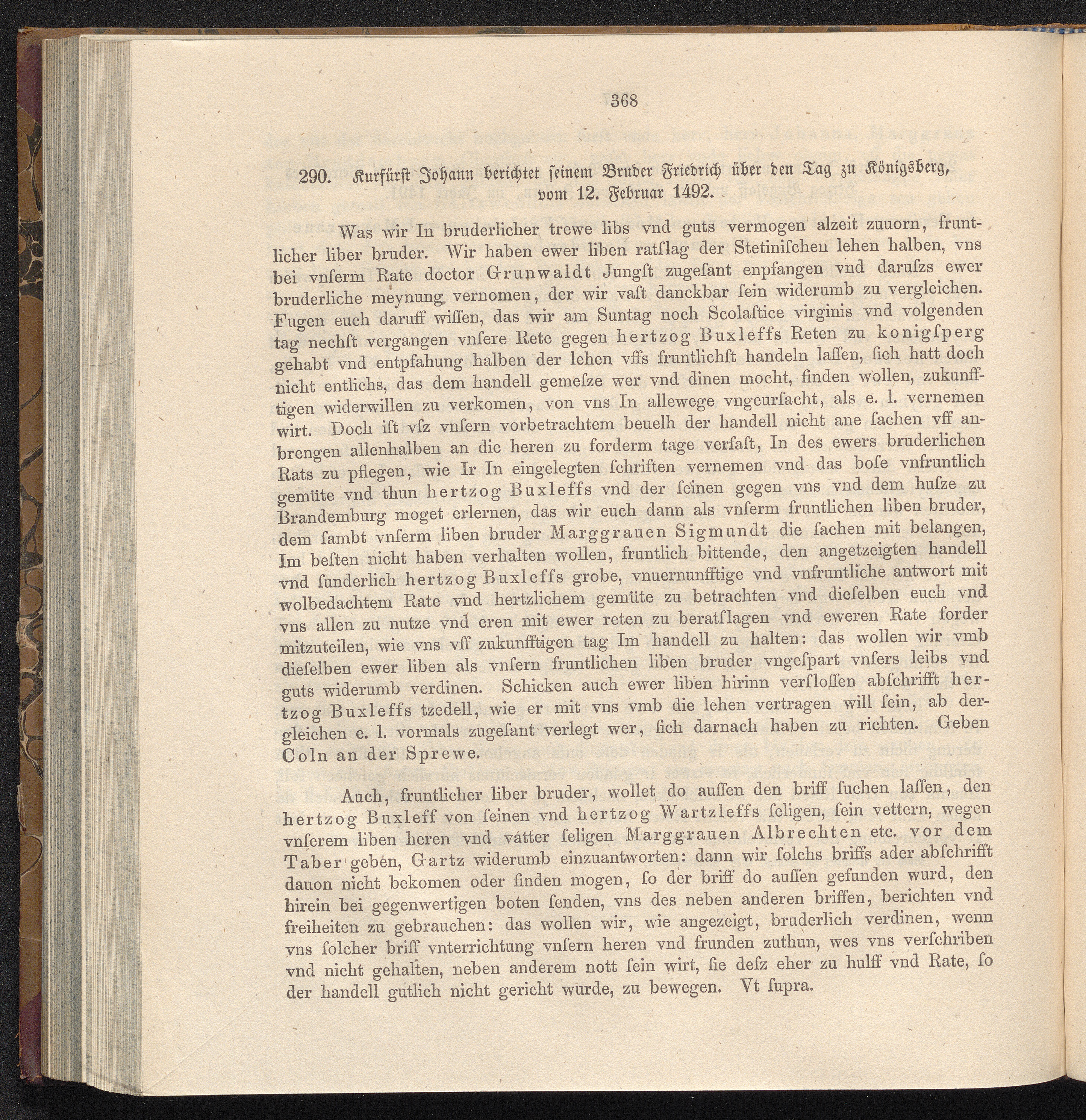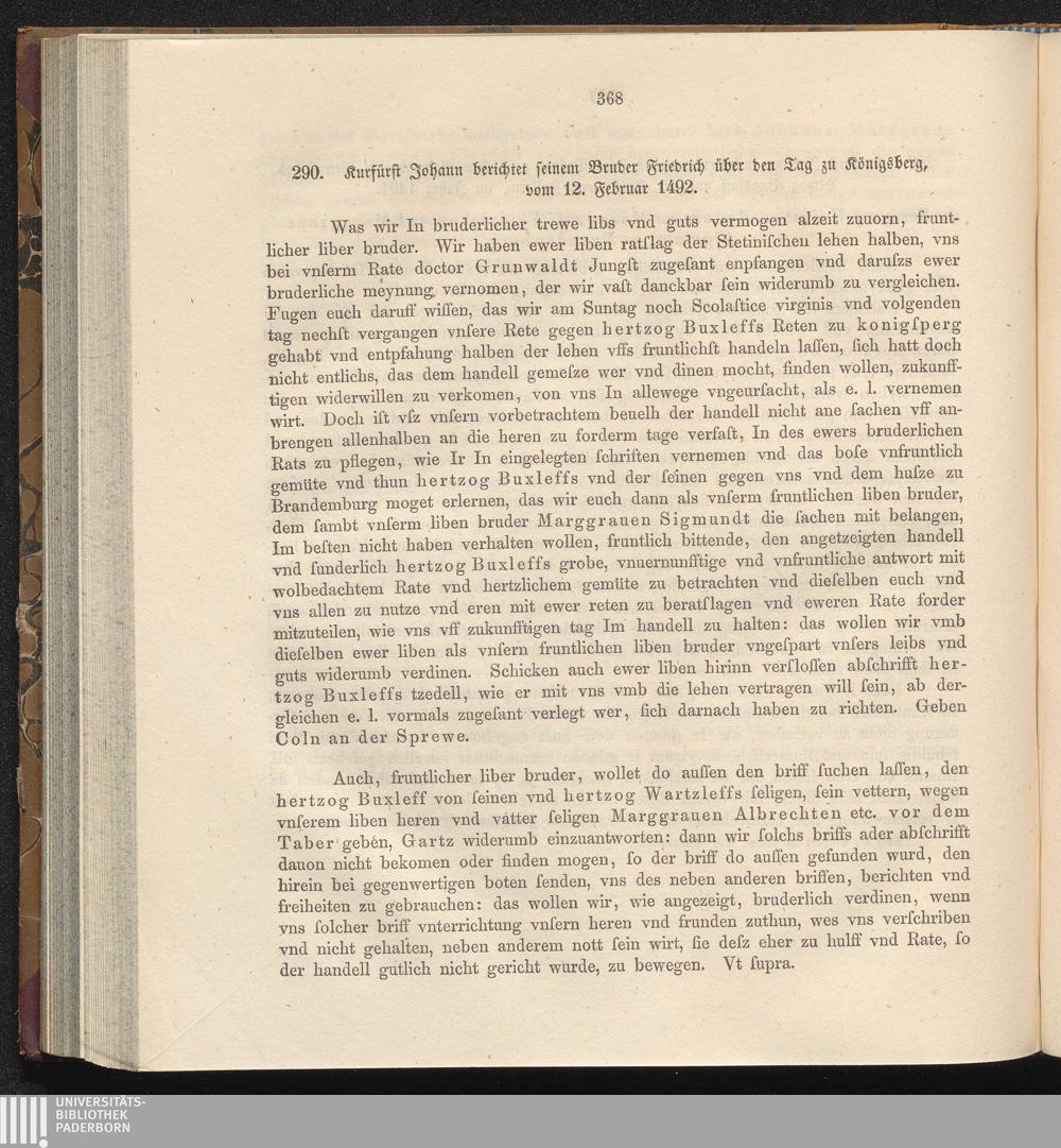 290. Kurfürst Johann berichtet seinem Bruder Friedrich über den Tag zu Königsberg,[...]