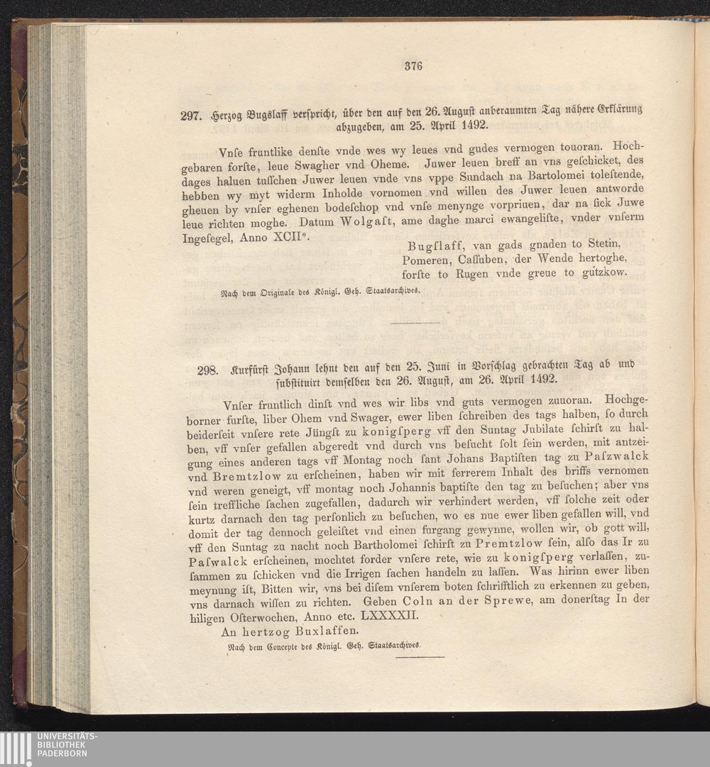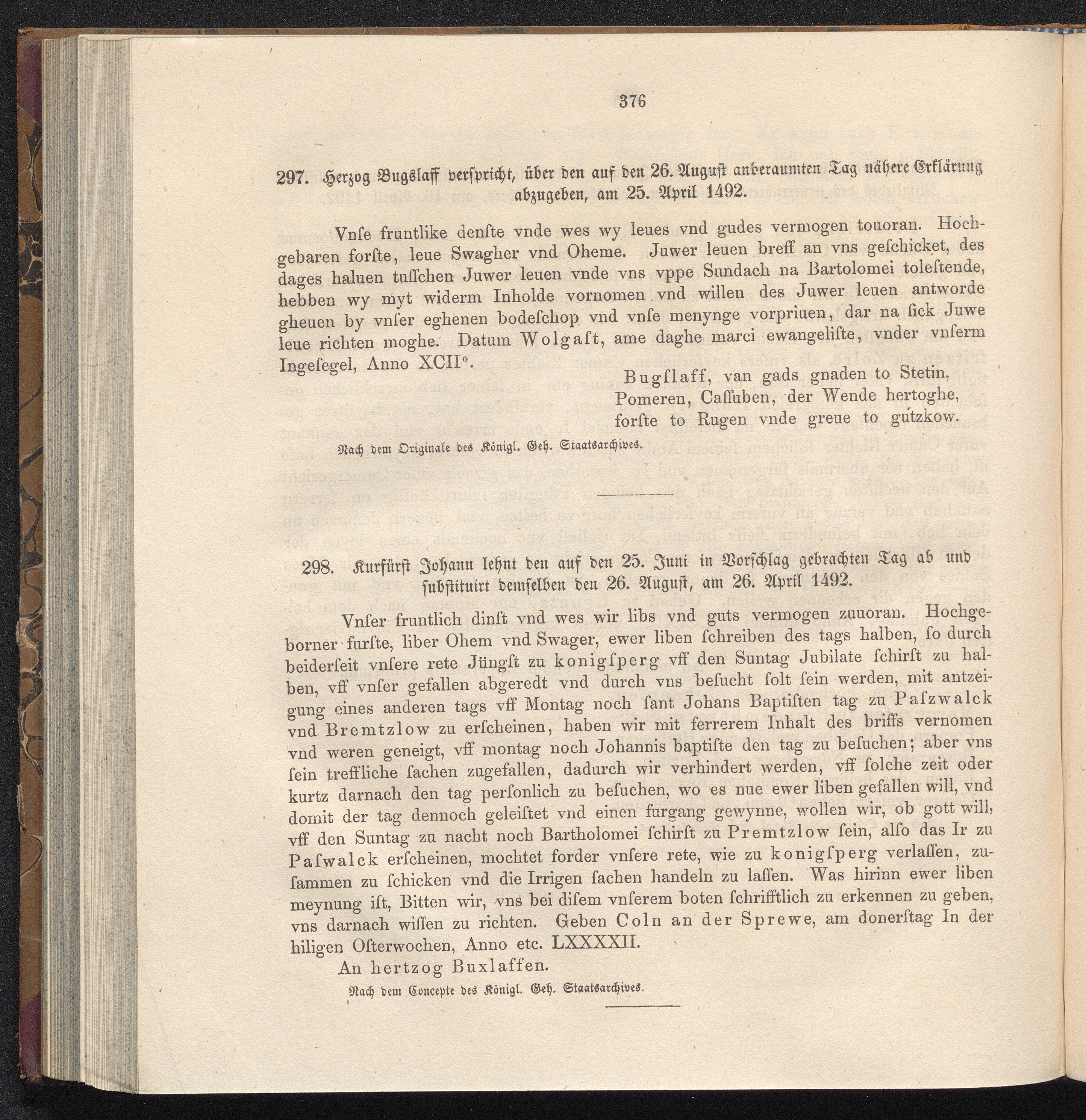 297. Herzog Bugslaff verspricht, über den auf den 26. August anberaumten Tag nähere[...]