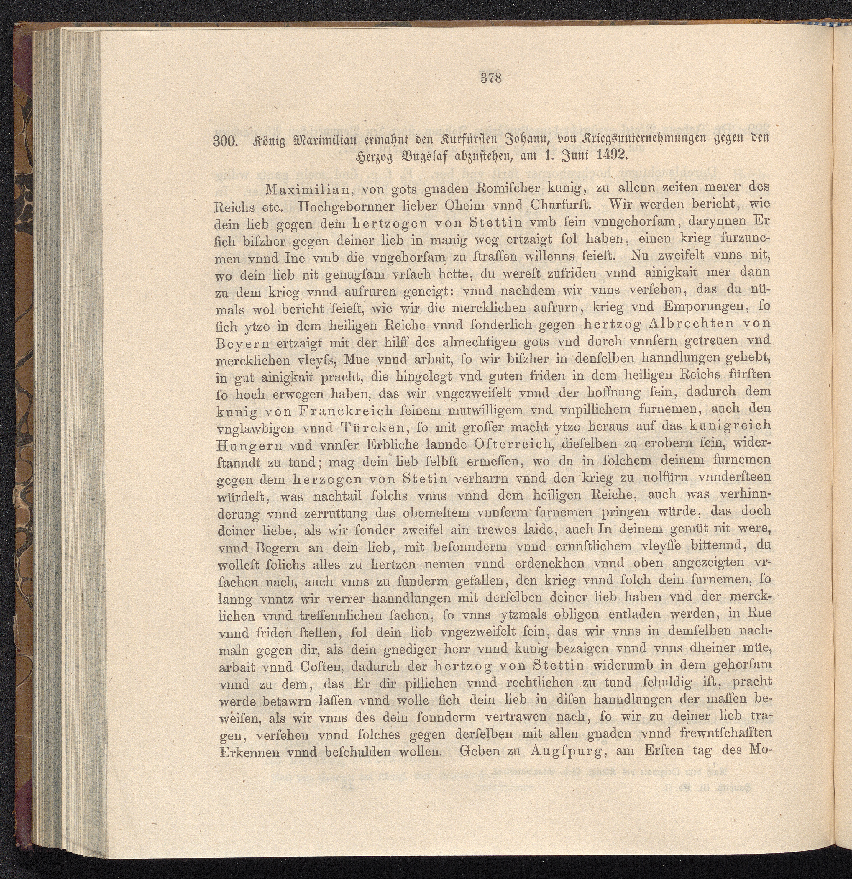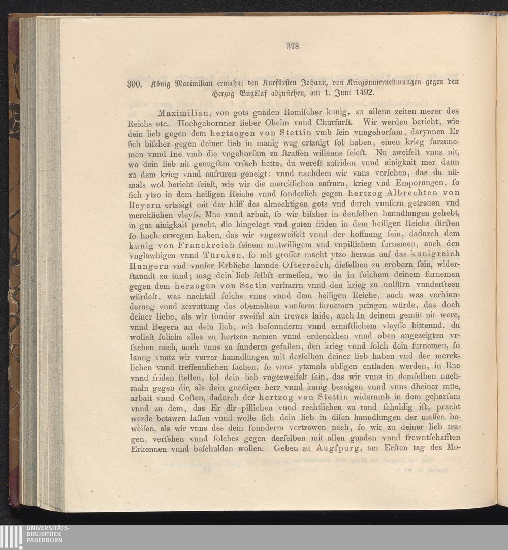 300. König Maximilian ermahnt den Kurfürsten Johann, von Kriegsunternehmungen gegen[...]