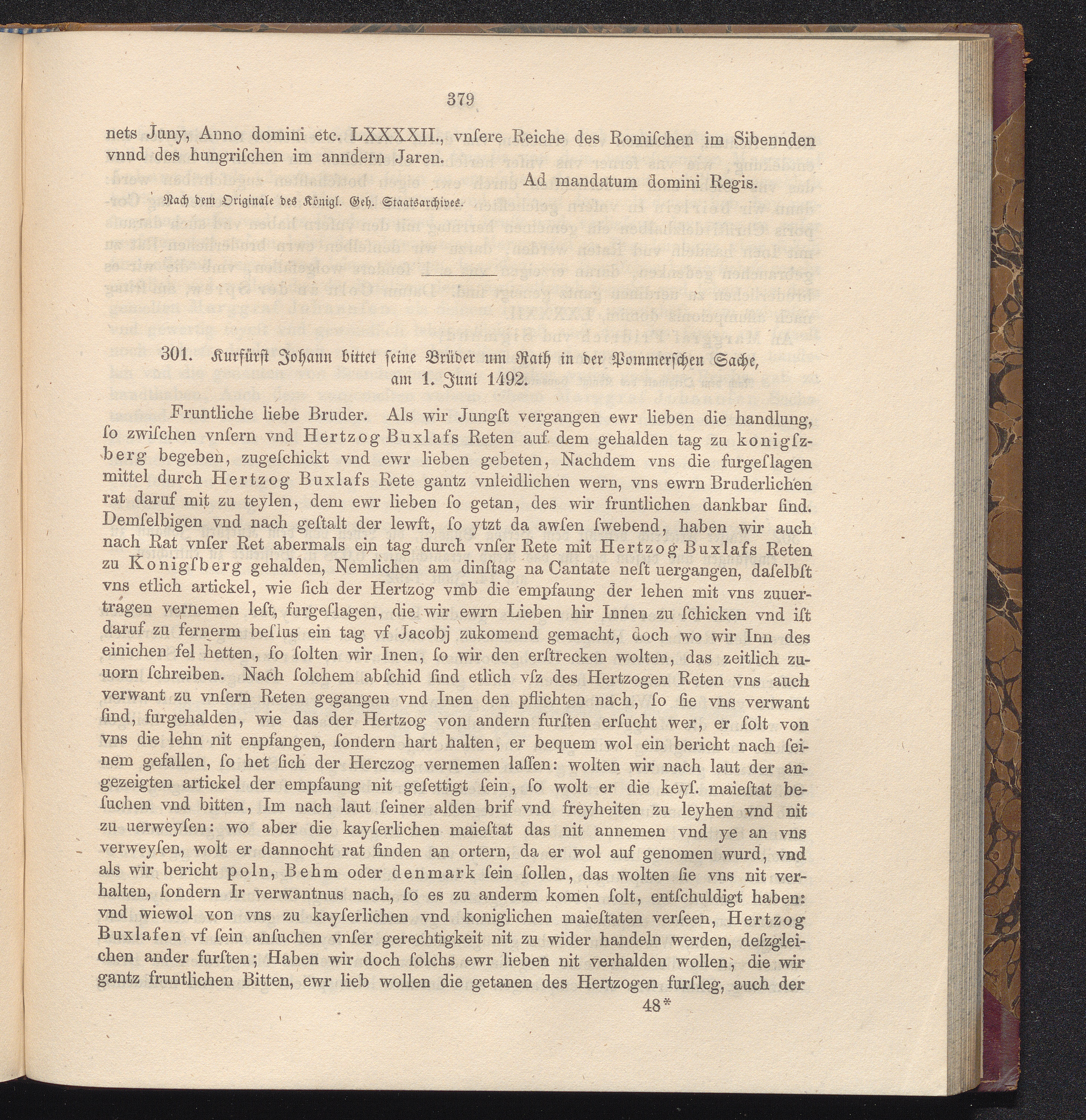 301. Kurfürst Johann bittet seine Brüder um Rath in der Pommerschen Sache, am 1.[...]