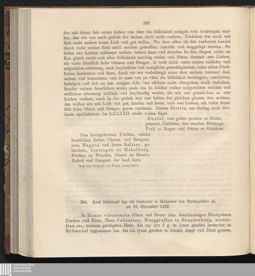 304. Hans Uthermark legt als Landreiter in Salzwedel sein Dienstgelübde ab, am 13.[...]