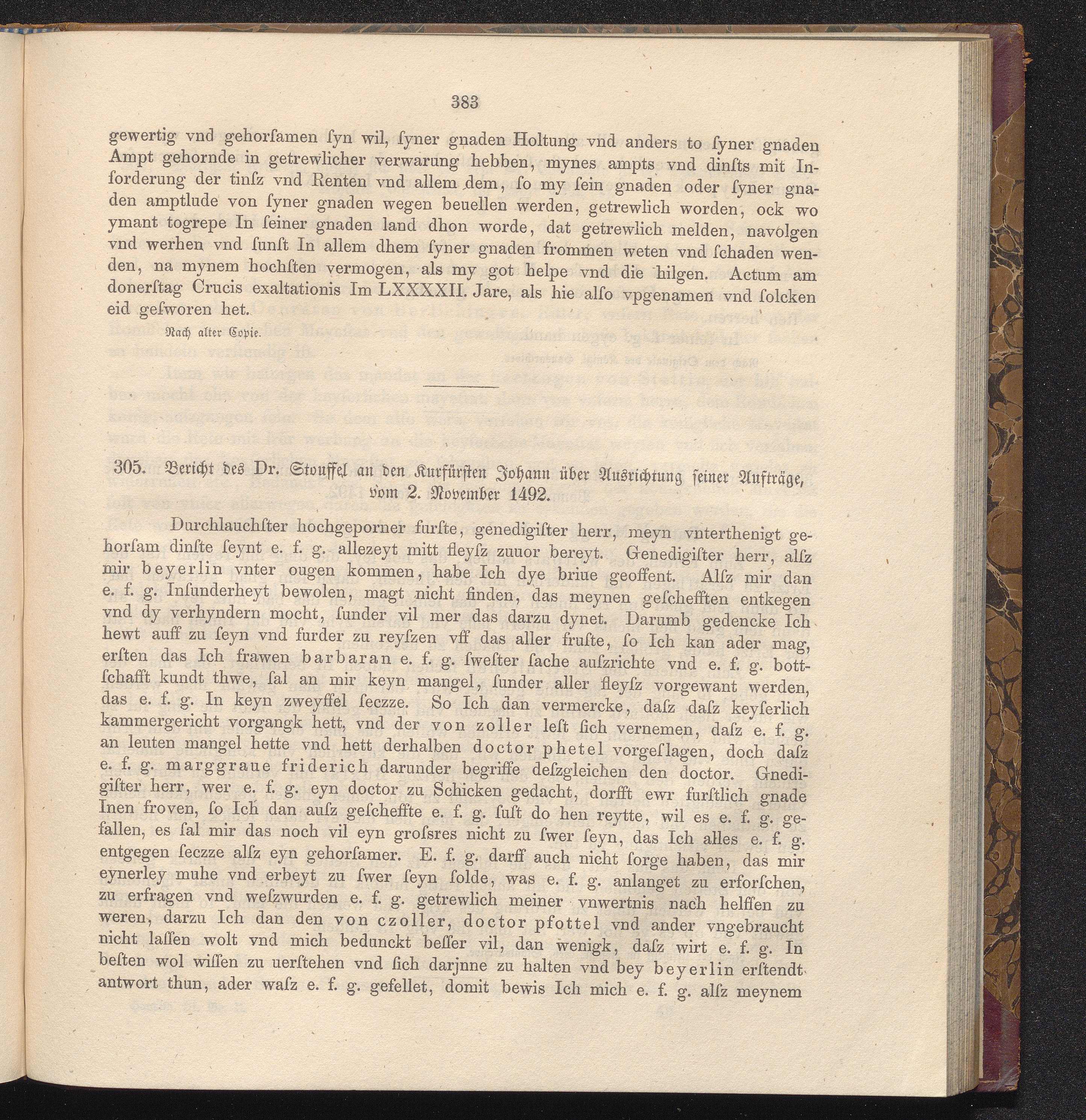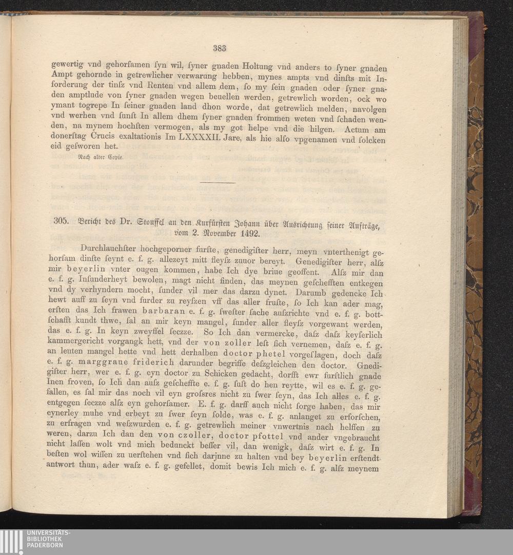 305. Bericht des Dr. Stouffel an den Kurfürsten Johann über Ausrichtung seiner Aufträge,[...]