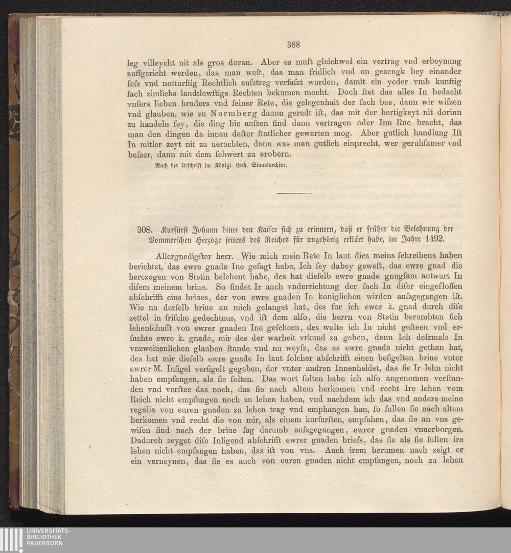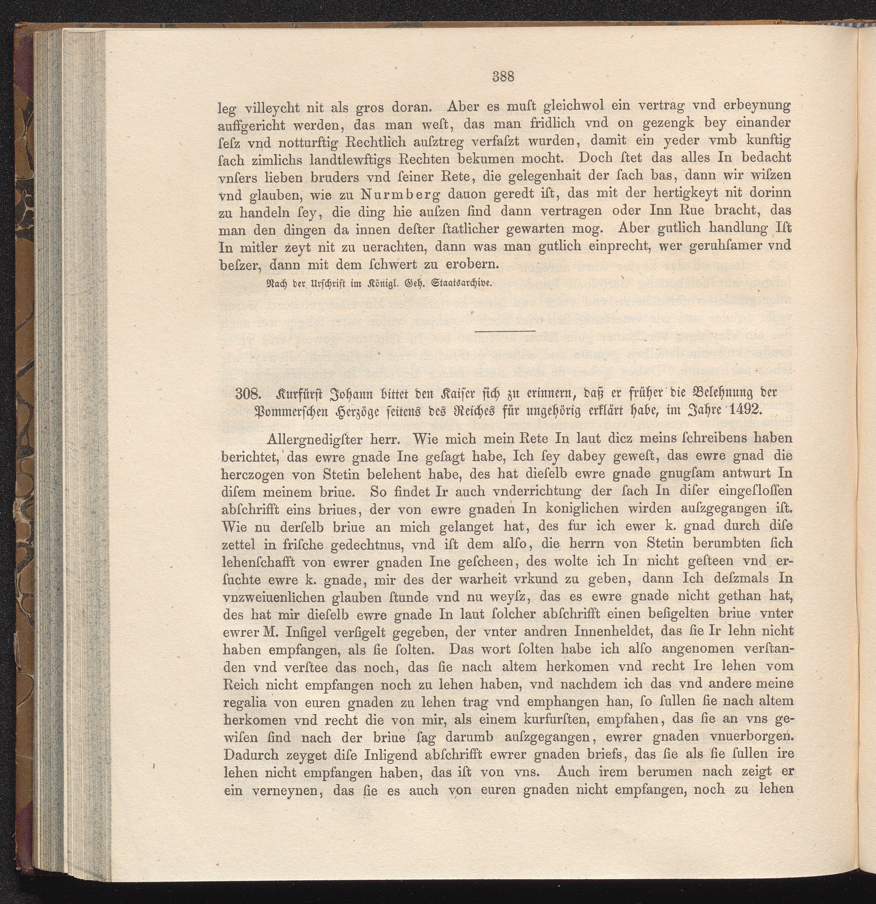 308. Kurfürst Johann bittet den Kaiser sich zu erinnern, daß er früher die Belehnung[...]