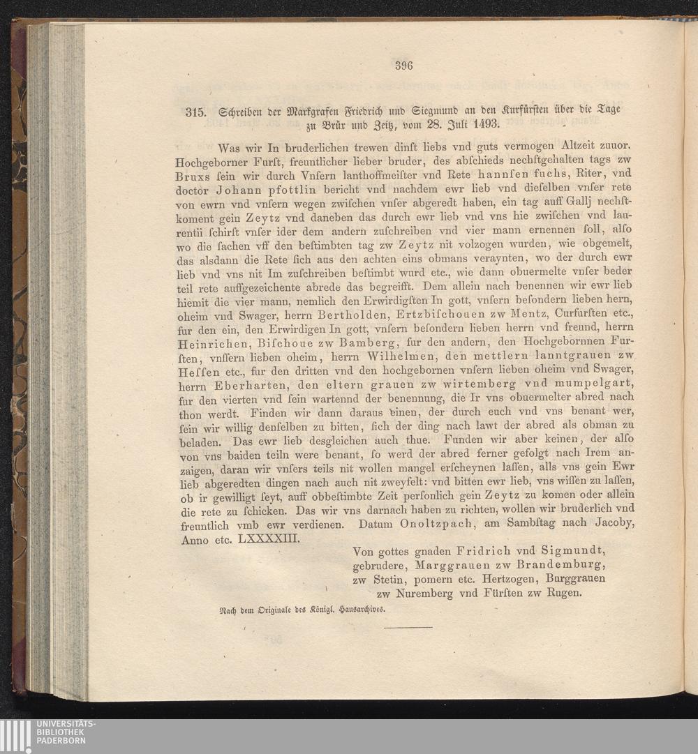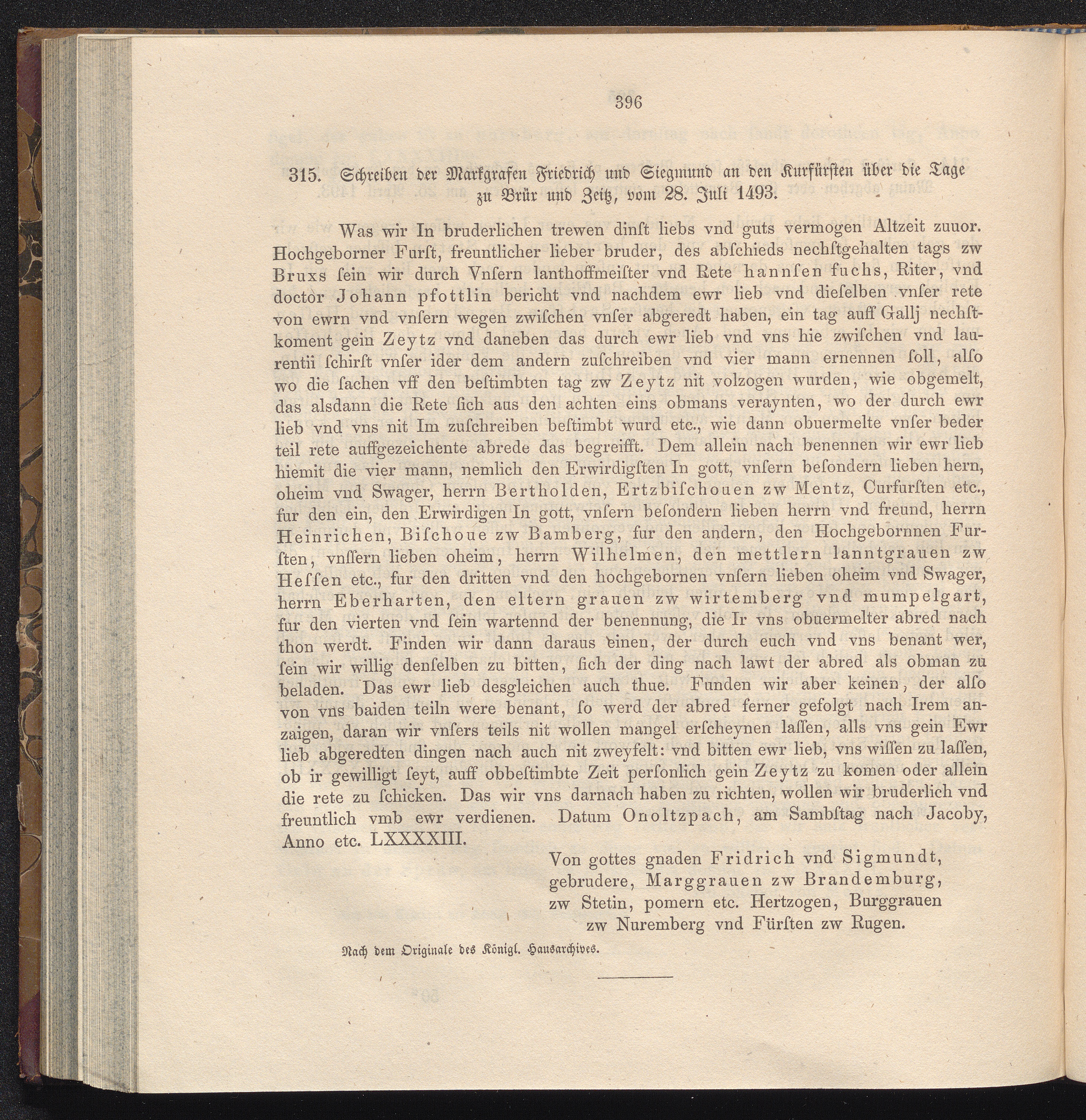 315. Schreiben der Markgrafen Friedrich und Siegmund an den Kurfürsten über die Frage[...]