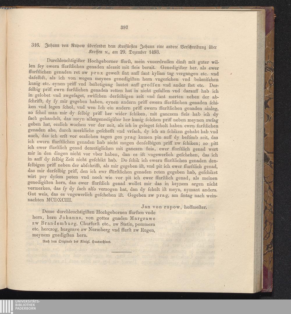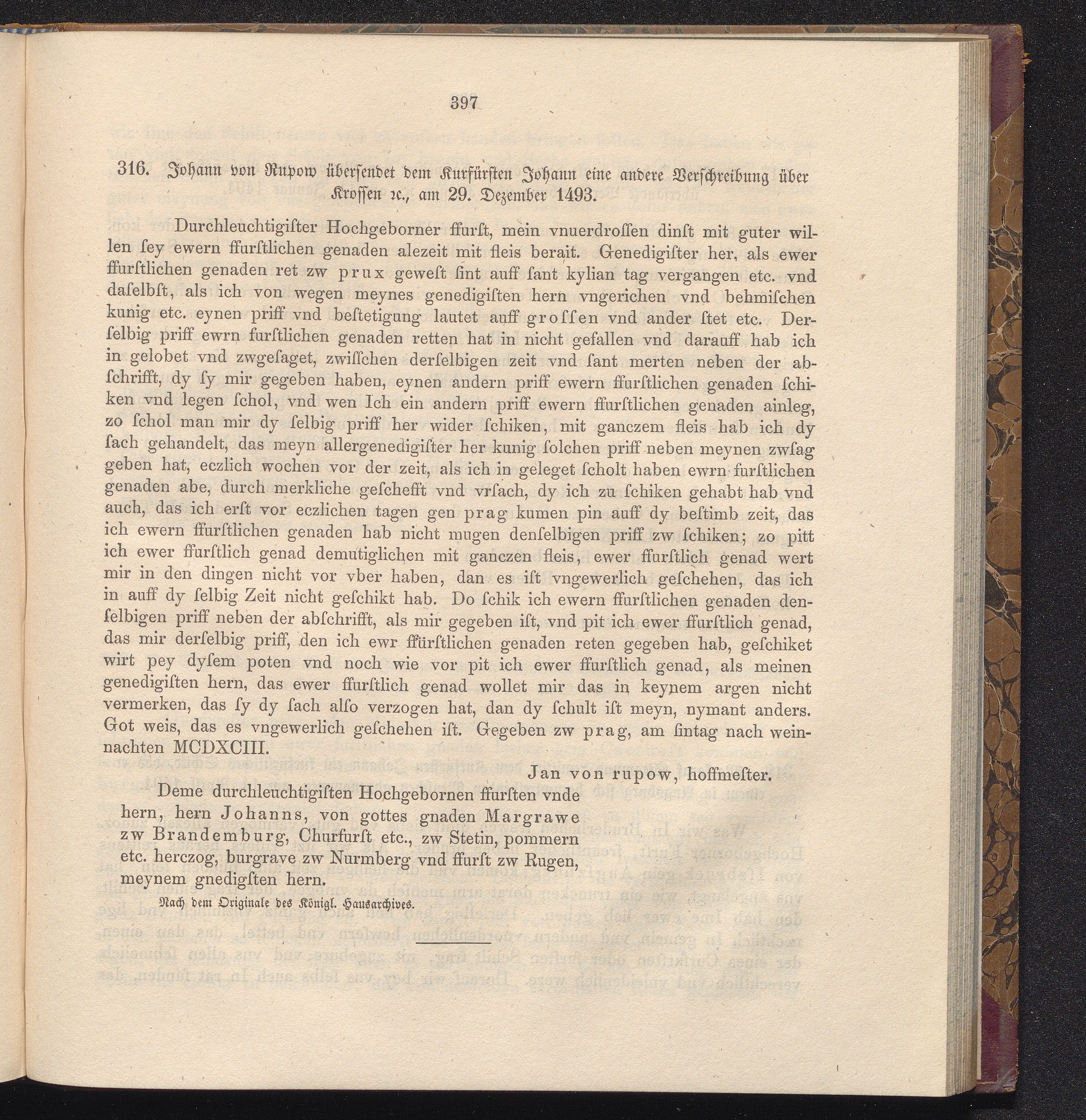 316. Johann von Rupow übersendet dem Kurfürsten Johann eine andere Verschreibung[...]