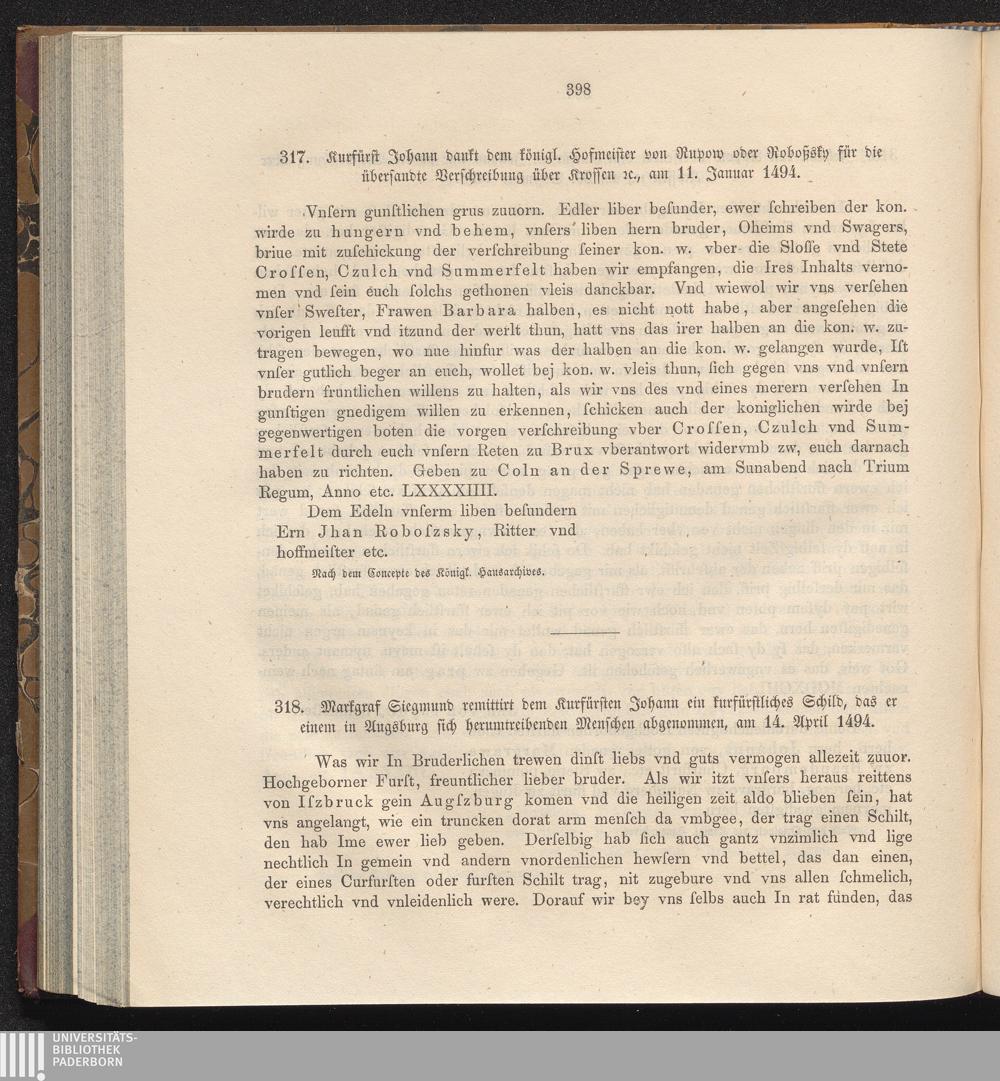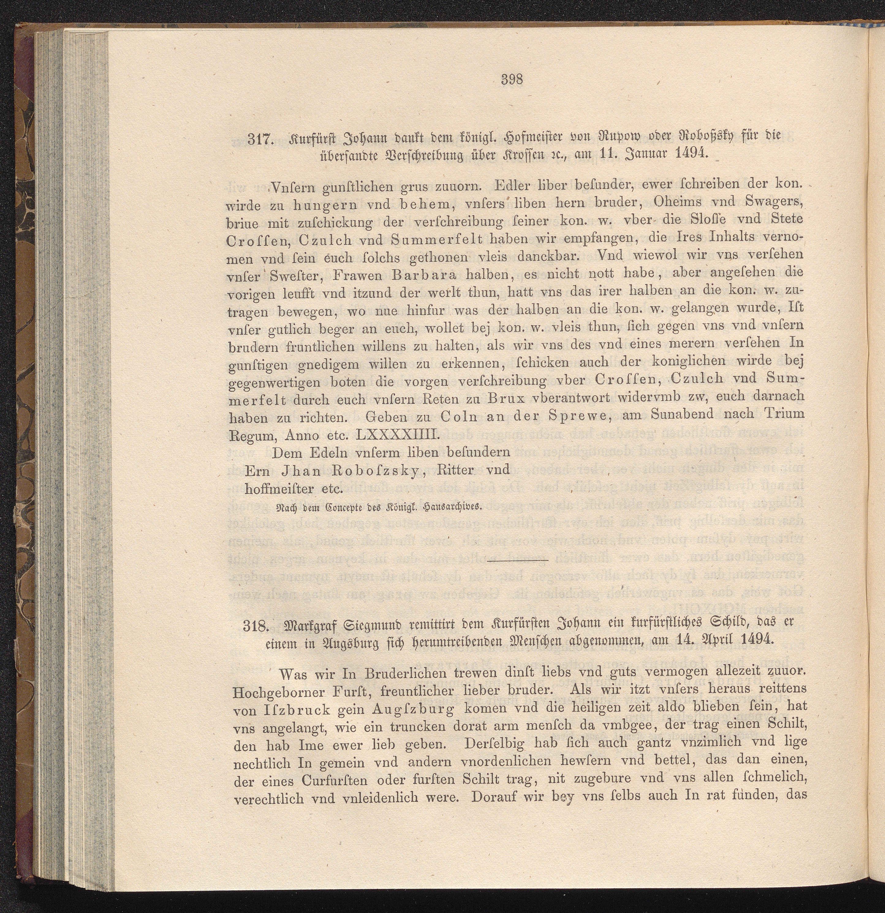 317. Kurfürst Johann dankt dem königl. Hofmeister von Rupow oder Robotzsky für die[...]