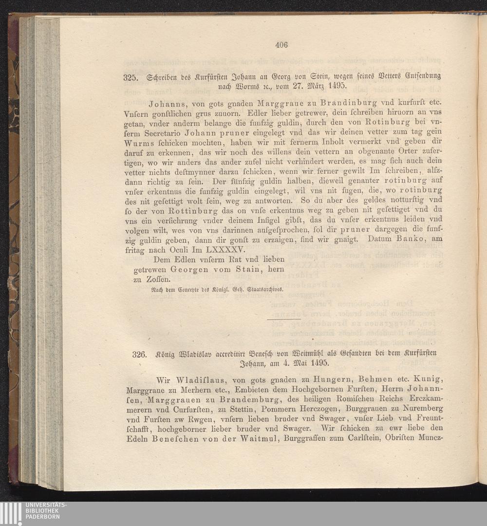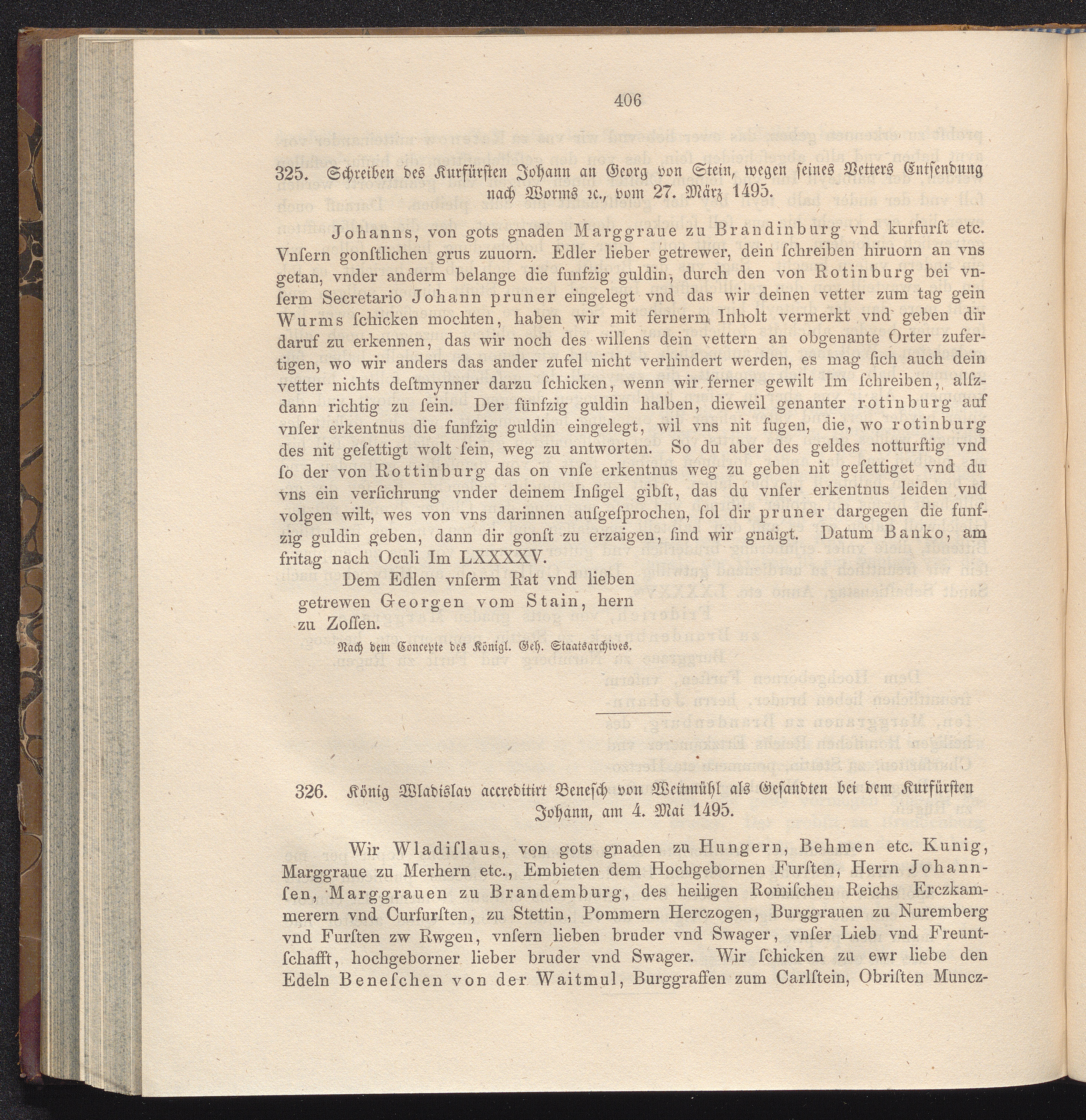 325. Schreiben des Kurfürsten Johann an Georg von Stein, wegen seines Vetters Entsendung[...]