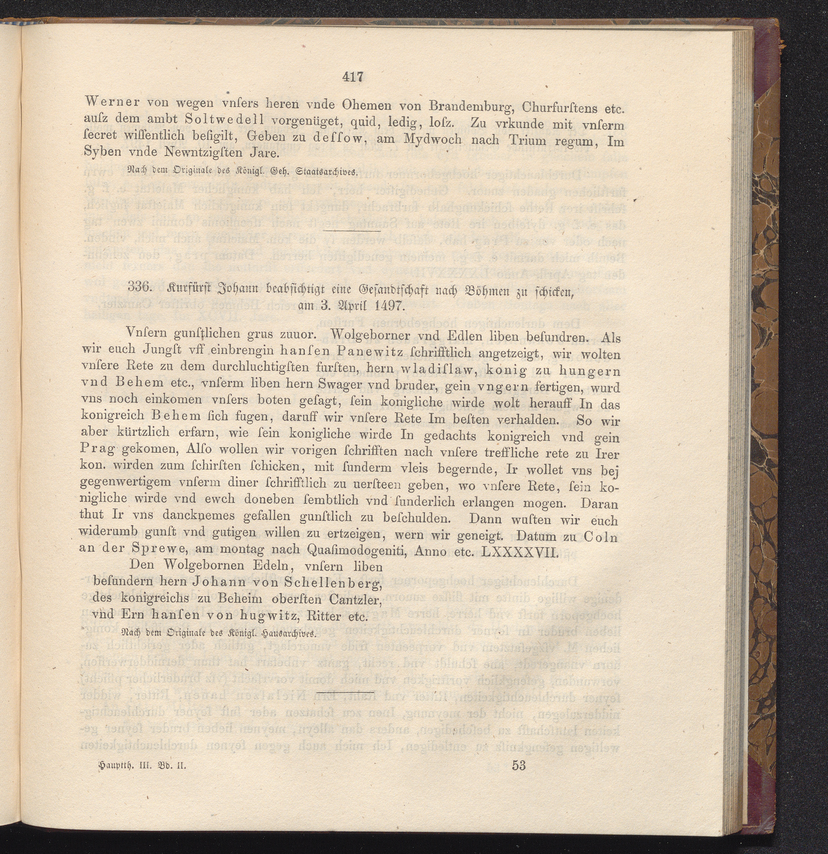 336. Kurfürst Johann beabsichtigt eine Gesandschaft nach Böhmen zu schicken, am 3.[...]