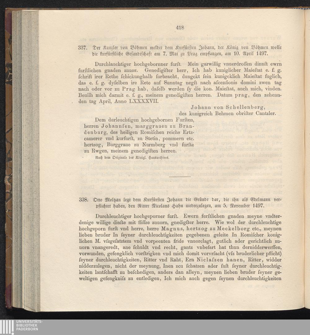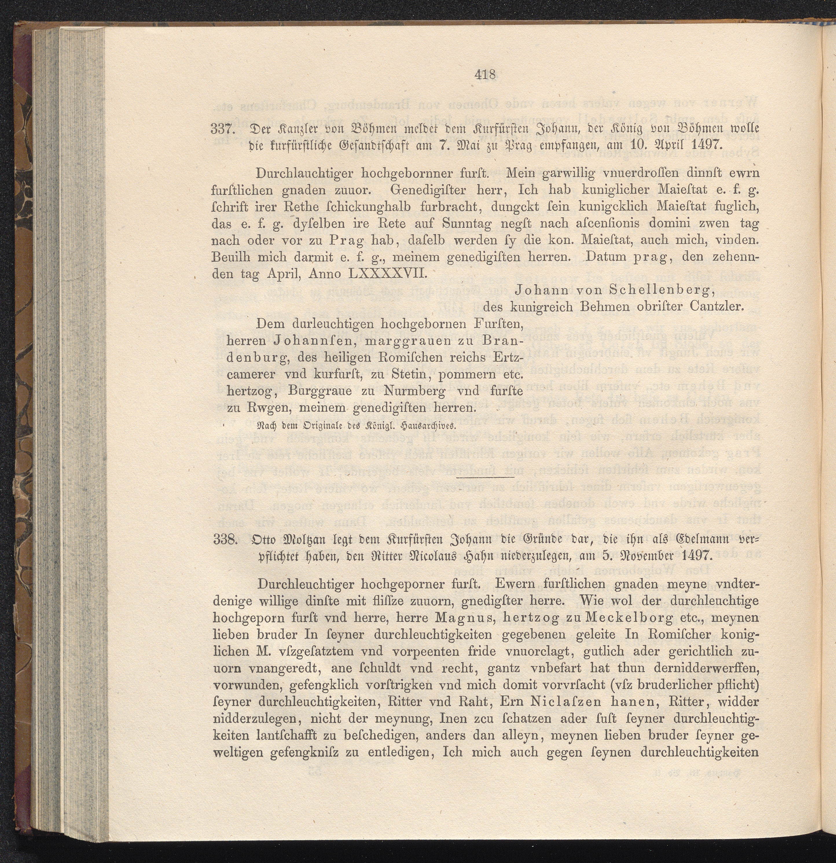 337. Der Kanzler von Böhmen meldet dem Kurfürsten Johann, der König von Böhmen wolle[...]