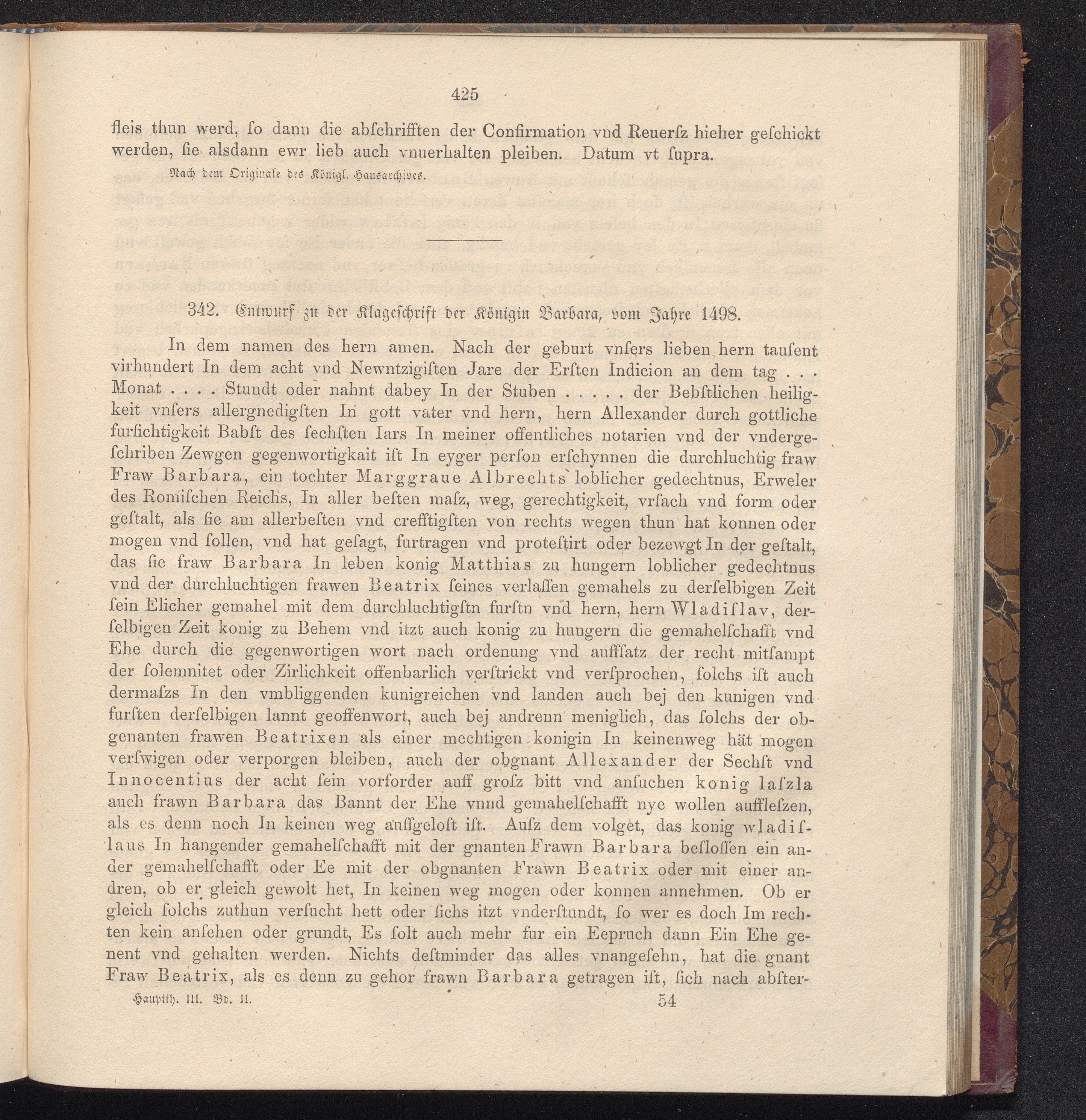 342. Entwurf zu der Klageschrift der Königin Barbara, vom Jahre 1498.