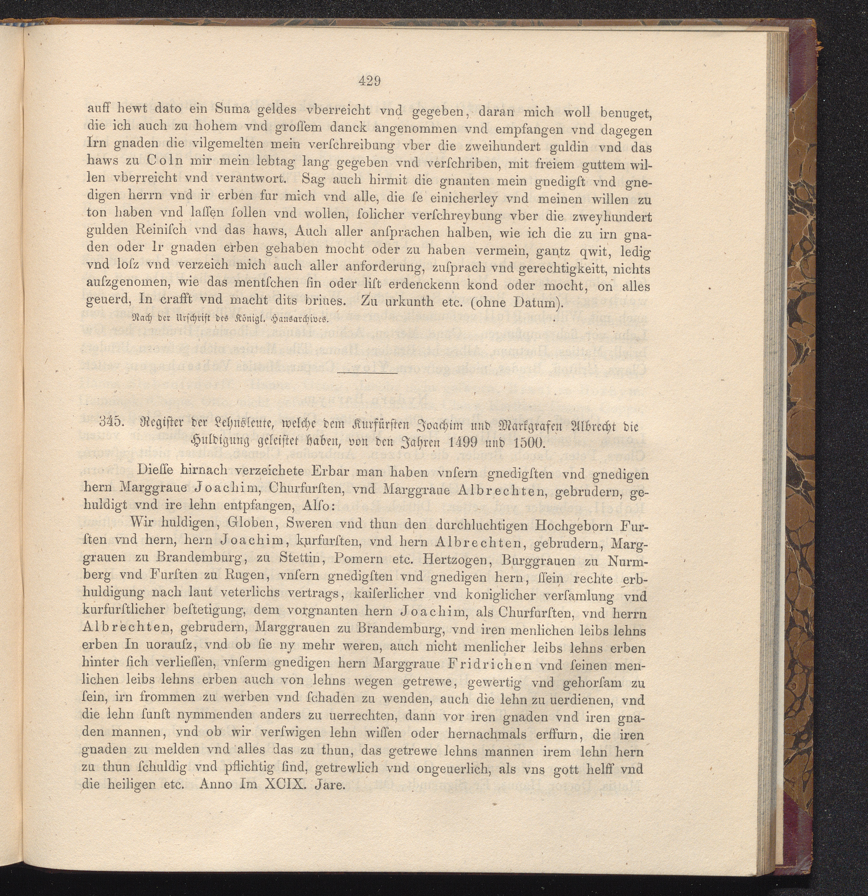 345. Register der Lehnsleute, welche dem Kurfürsten Joachim und Markgrafen Albrecht[...]