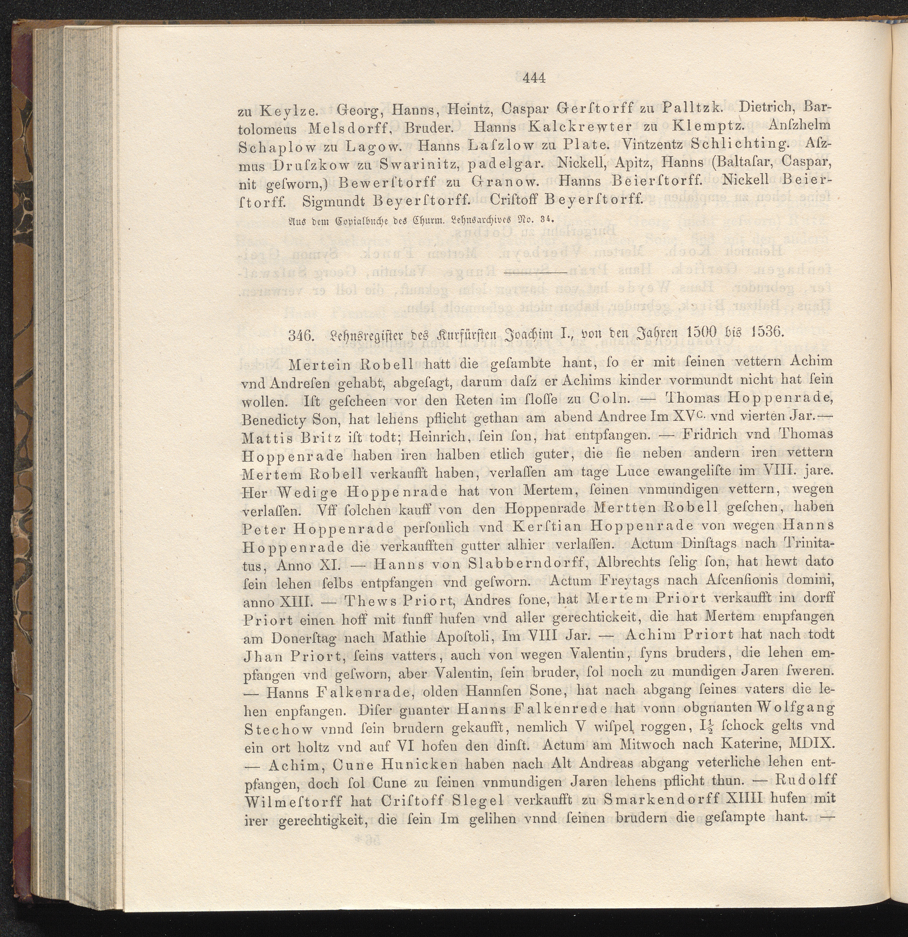 346. Lehnsregister des Kurfürsten Joachim I., von den Jahren 1500 bis 1536.