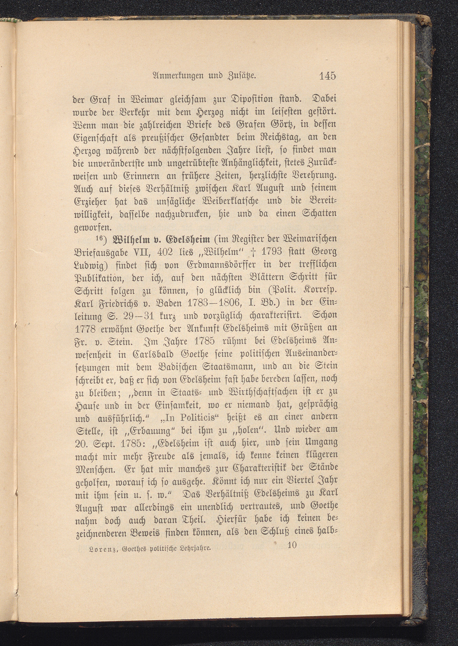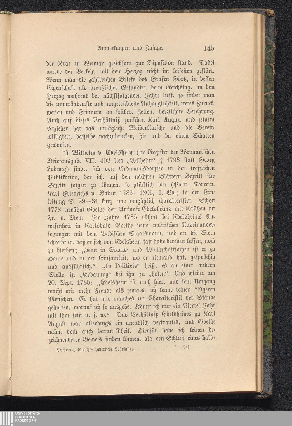 Goethes politische Lehrjahre : ein in der 8. Generalversammlung der Goethegesellschaft gehaltener und erweiterter Vortrag mit Anmerkungen, Zusätzen und einem Anh.: Goethe als Historiker / von Ottokar Lorenz