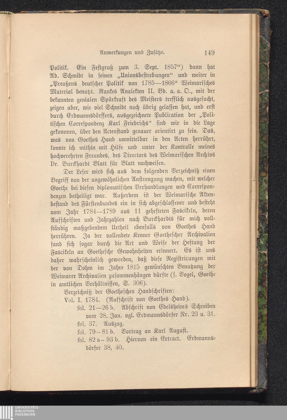 Goethes politische Lehrjahre : ein in der 8. Generalversammlung der Goethegesellschaft gehaltener und erweiterter Vortrag mit Anmerkungen, Zusätzen und einem Anh.: Goethe als Historiker / von Ottokar Lorenz