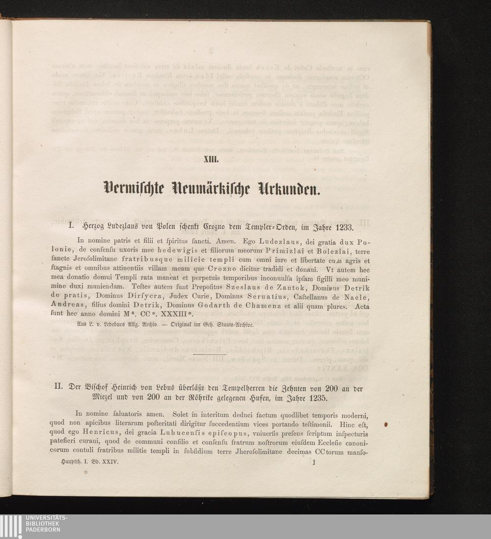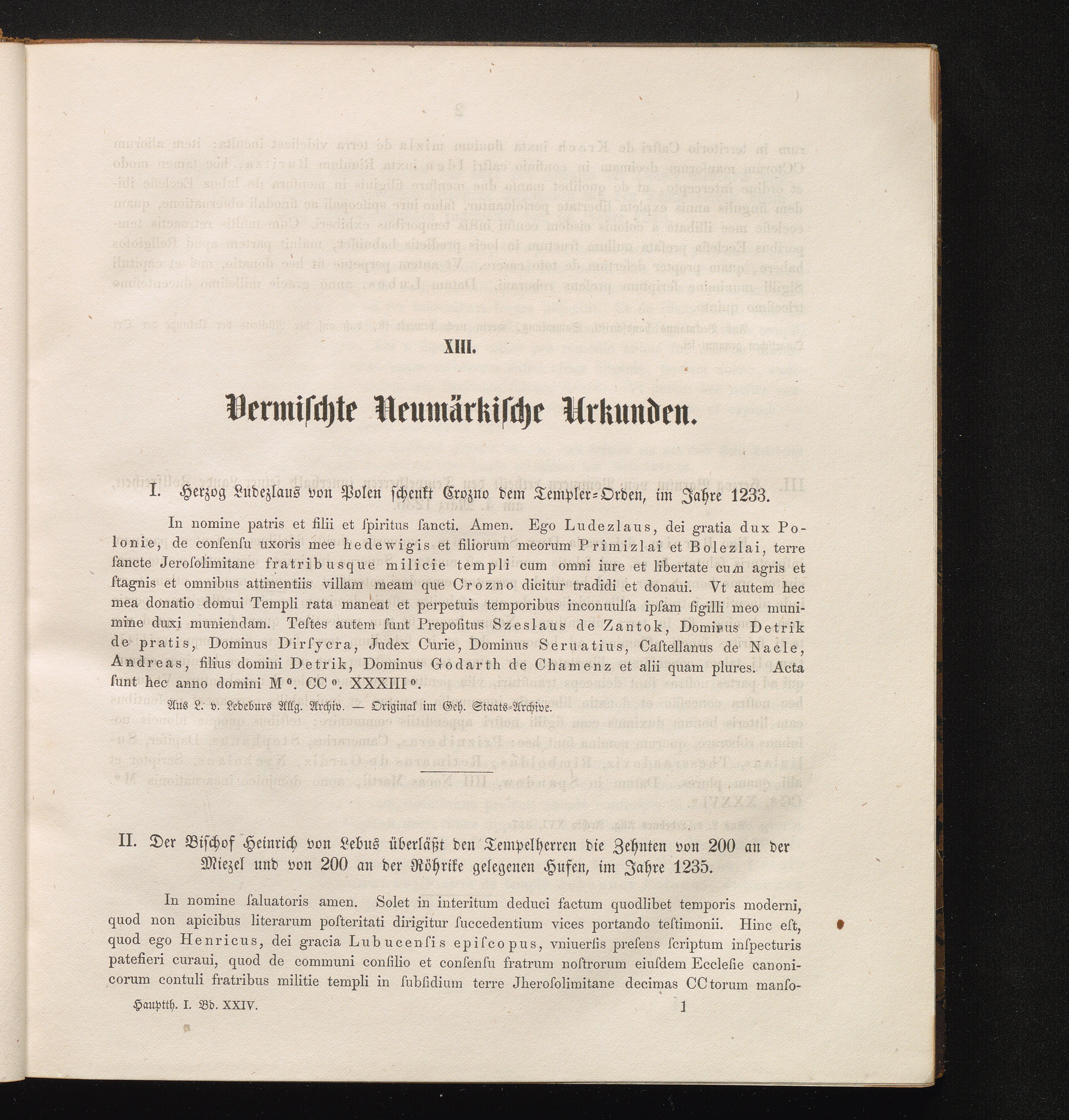 II. Der Bischof Heinrich von Lebus überläßt den Tempelherren die Zehnten von 200[...]