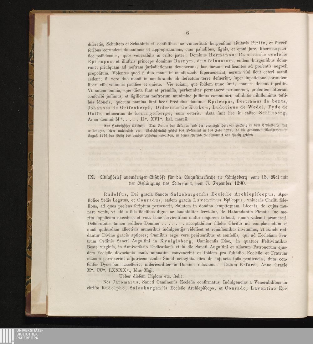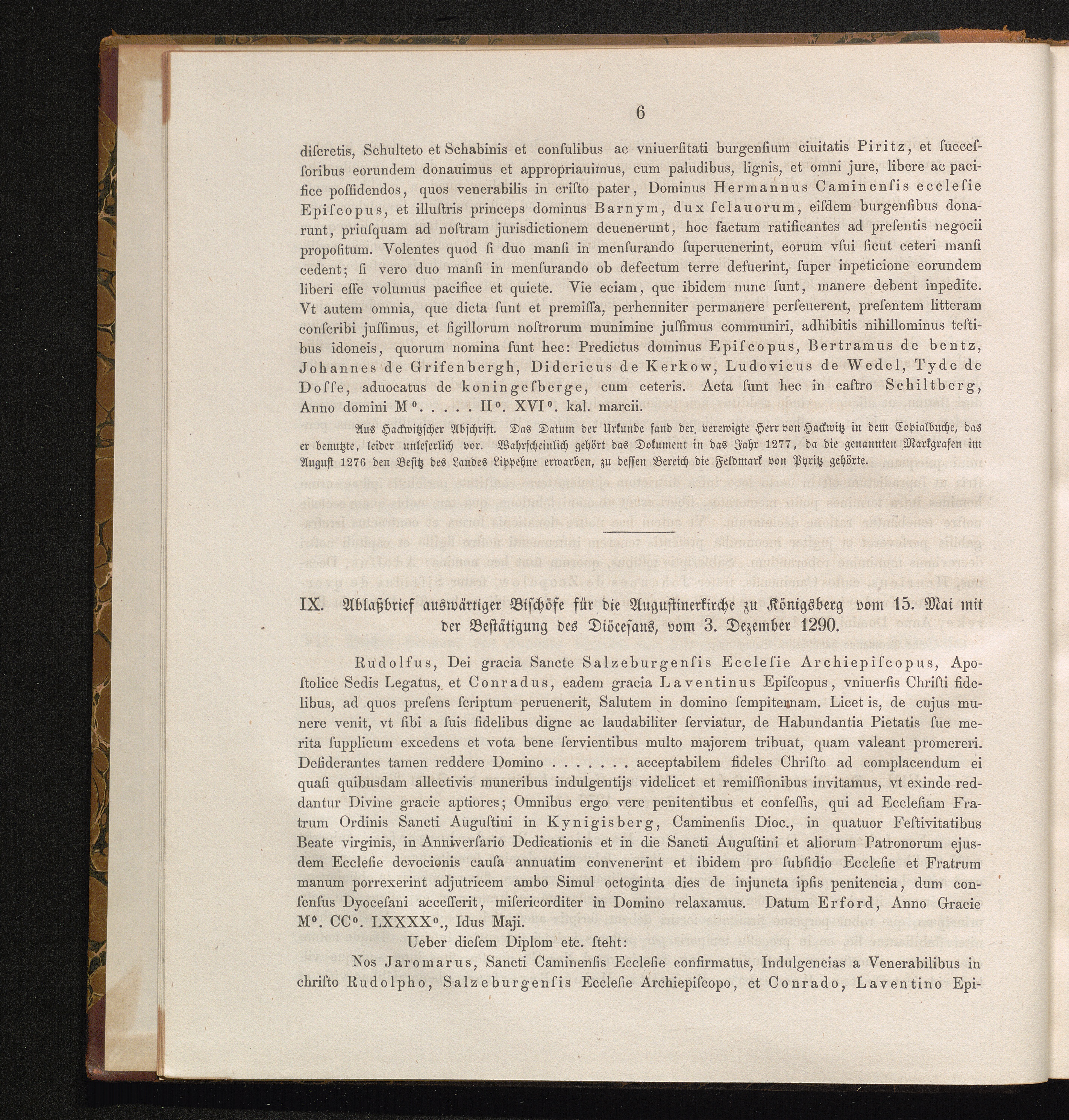 IX. Ablaßbrief auswärtiger Bischöfe für die Augustinerkirche zu Königsberg vom 15.[...]
