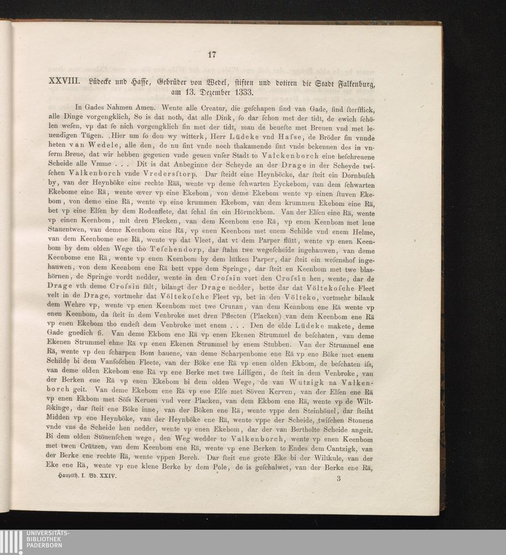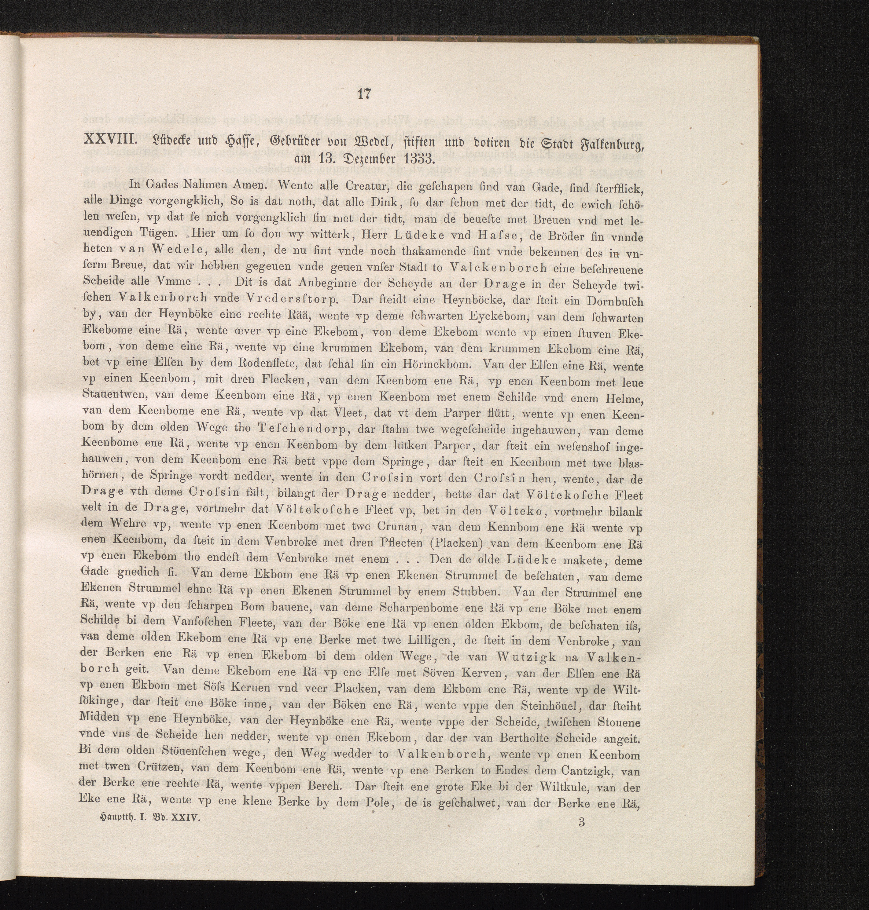 XXVIII. Lüdecke und Hasse, Gebrüder von Wedel, stiften und dotiren die Stadt Falkenburg,[...]