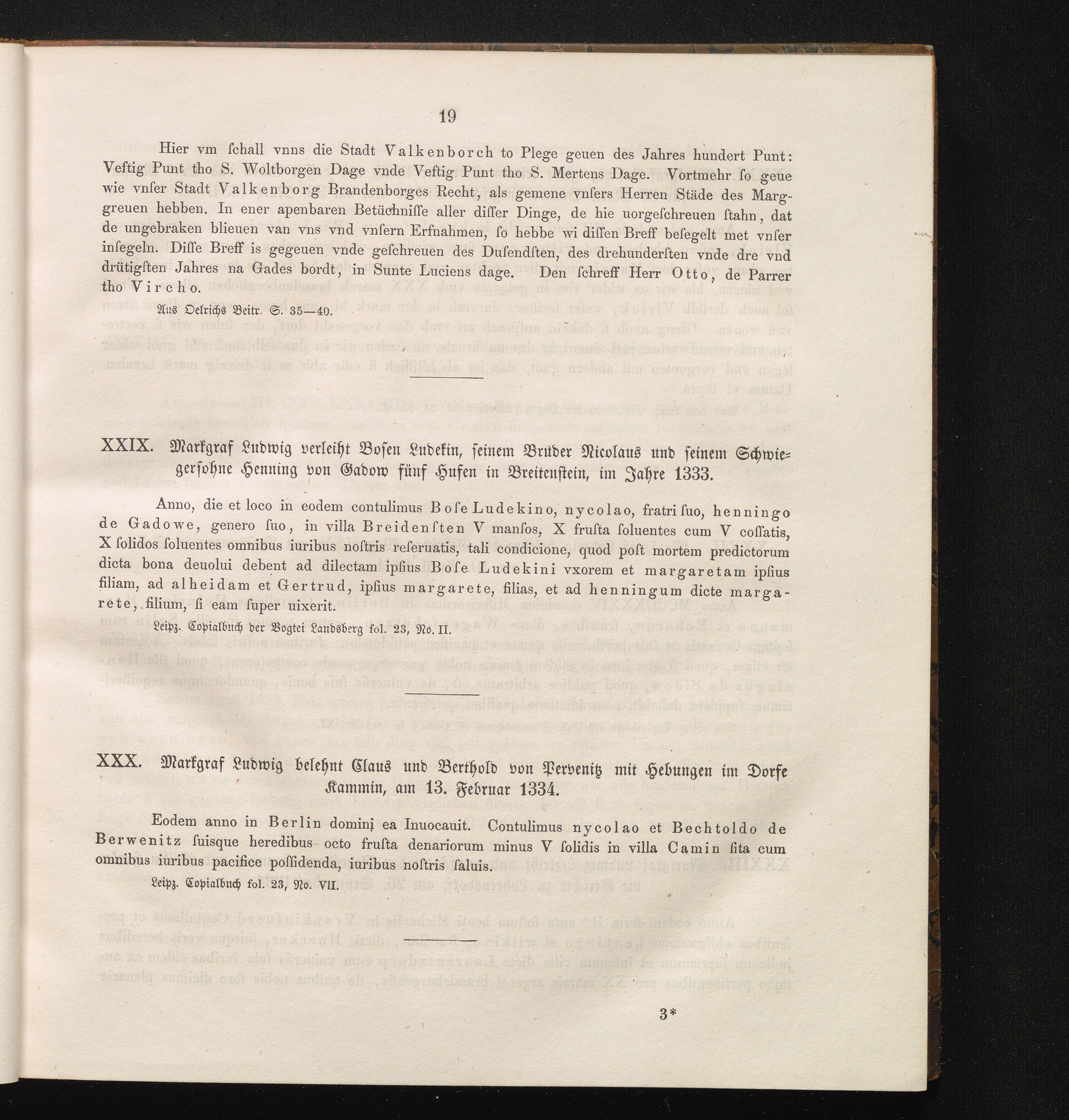 XXX. Markgraf Ludwig belehnt Claus und Berthold von Pervenitz mit Hebungen im Dorfe[...]