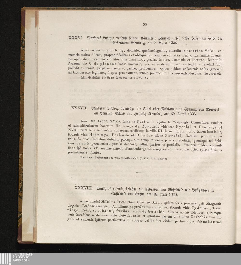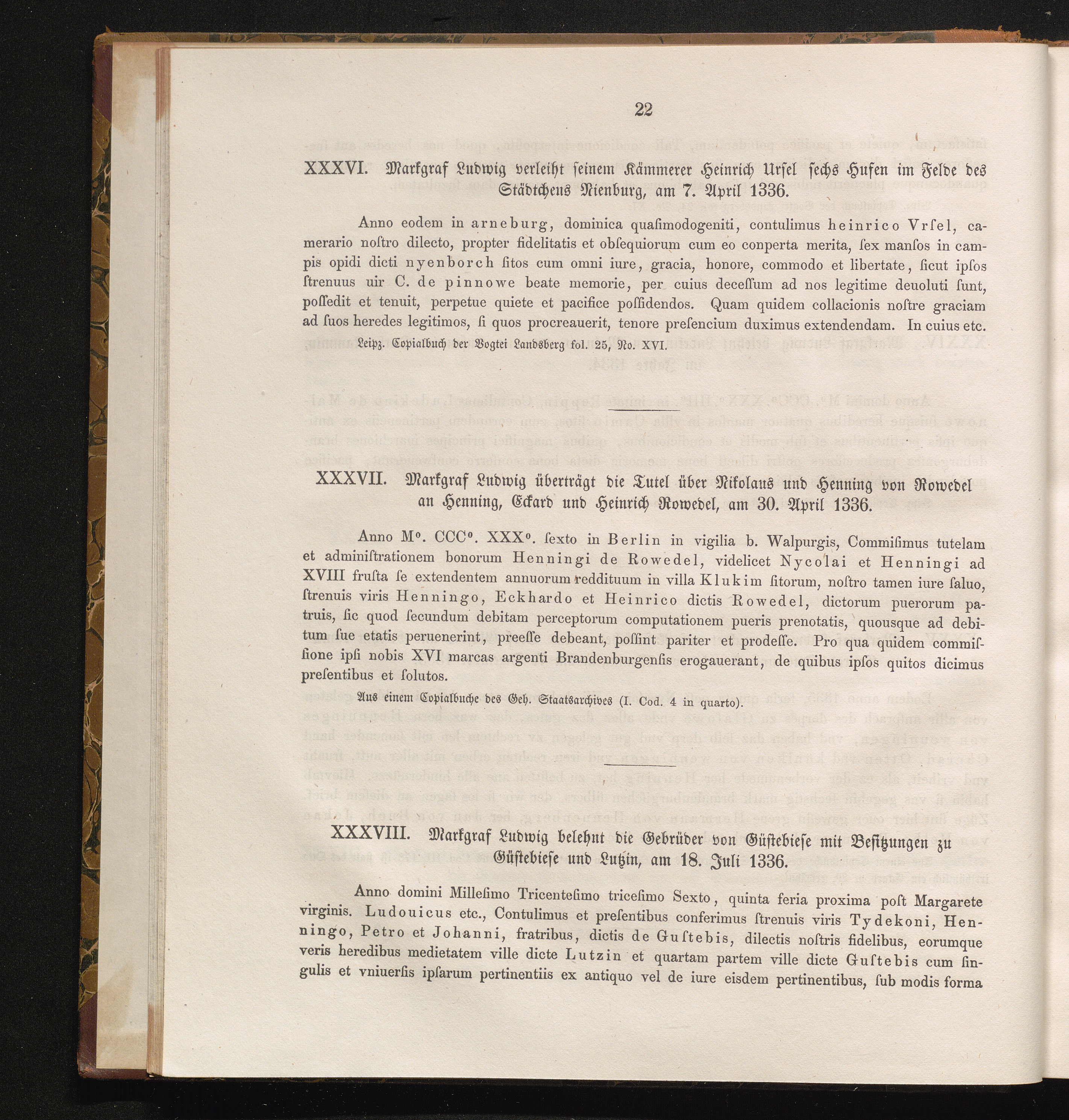 XXXVIII. Markgraf Ludwig belehnt die Gebrüder von Güstebiese mit Besitzungen zu Güstebiese[...]