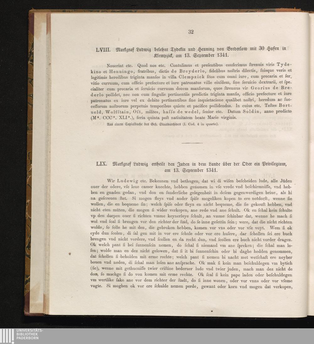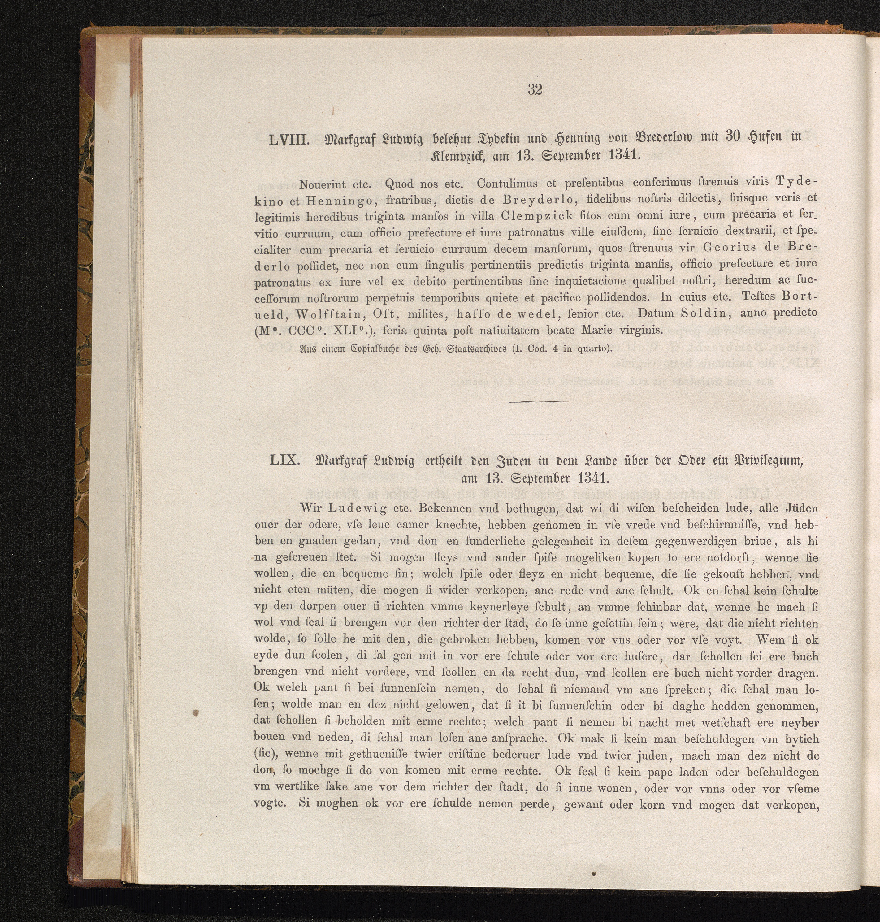 LIX. Markgraf Ludwig ertheilt den Juden in dem Lande über der Oder ein Privilegium,[...]