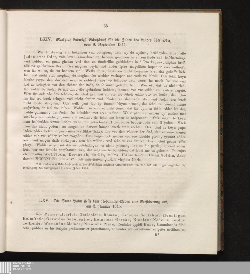 LXV. Die Stadt Bahn stellt dem Johanniter-Orden eine Versicherung aus, am 5. Januar[...]