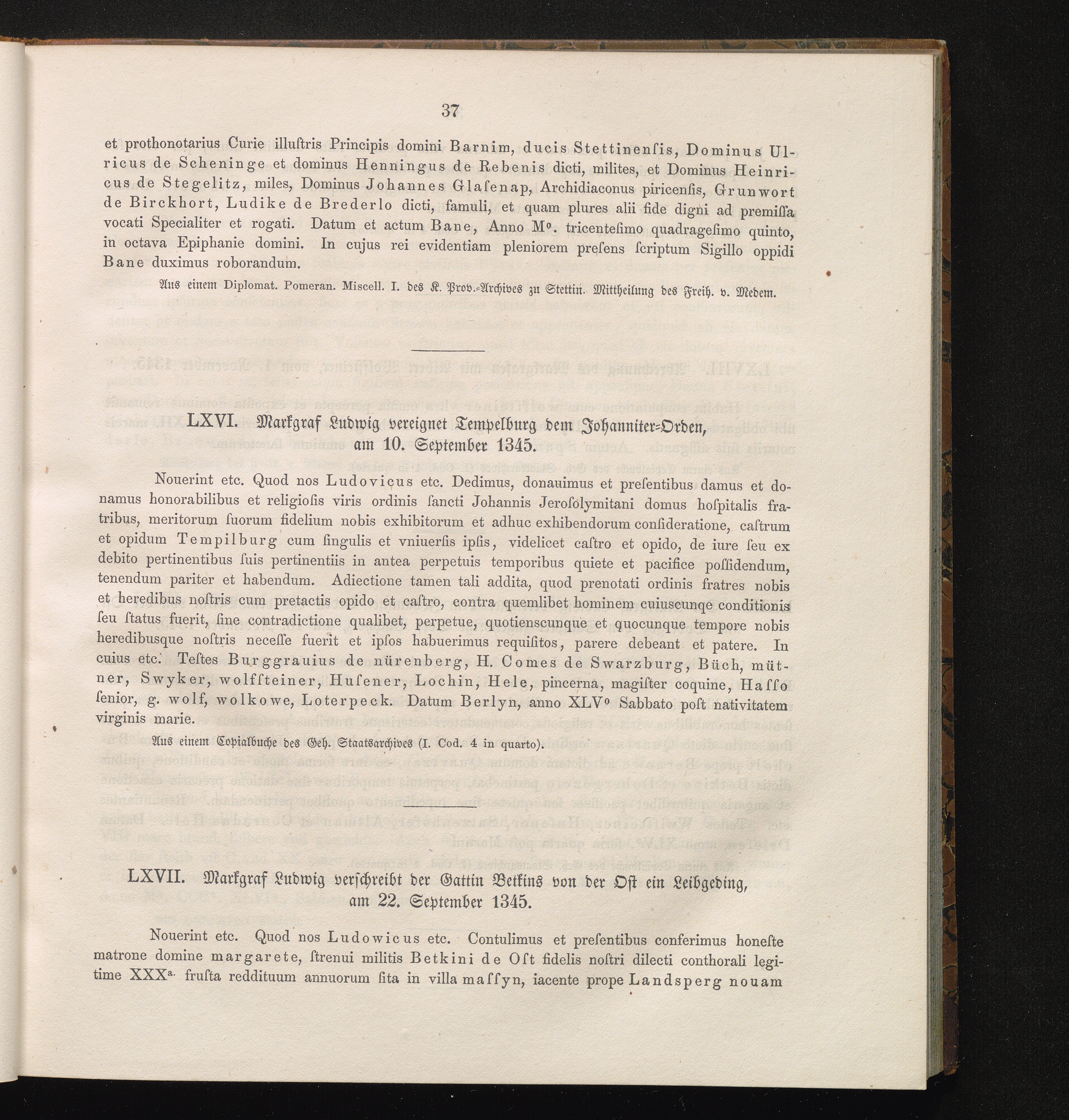 LXVII. Markgraf Ludwig verschreibt der Gattin Betkins von der Ost ein Leibgeding,[...]