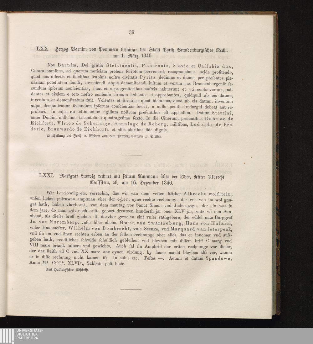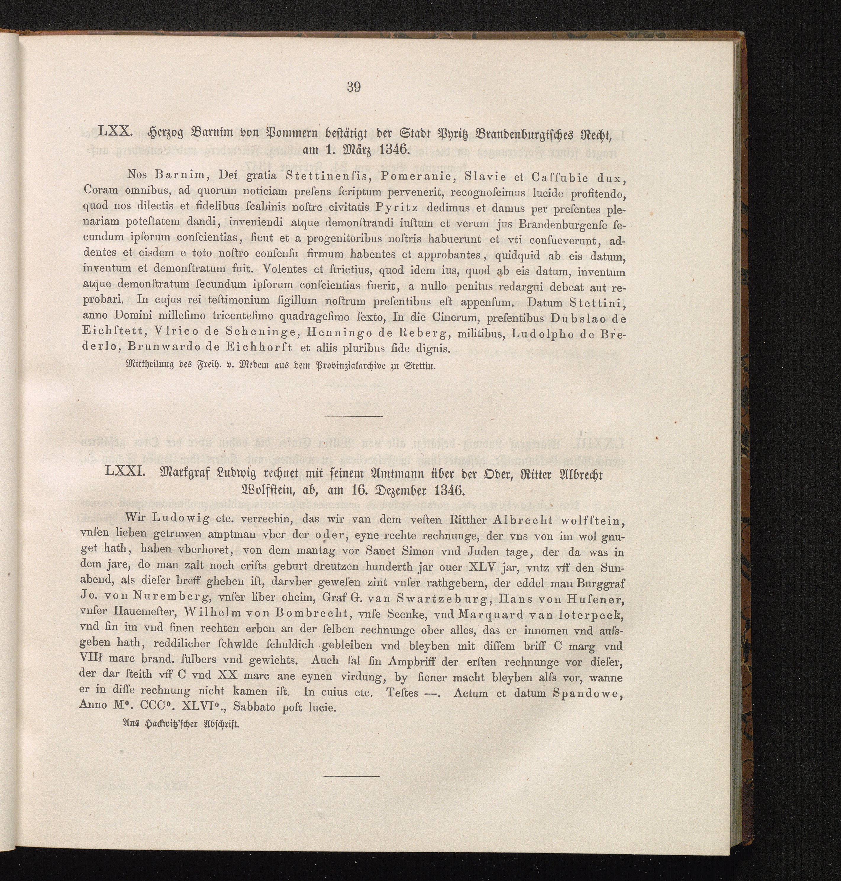 LXXI. Markgraf Ludwig rechnet mit seinem Amtmann über der Oder, Ritter Albrecht Wolfstein,[...]