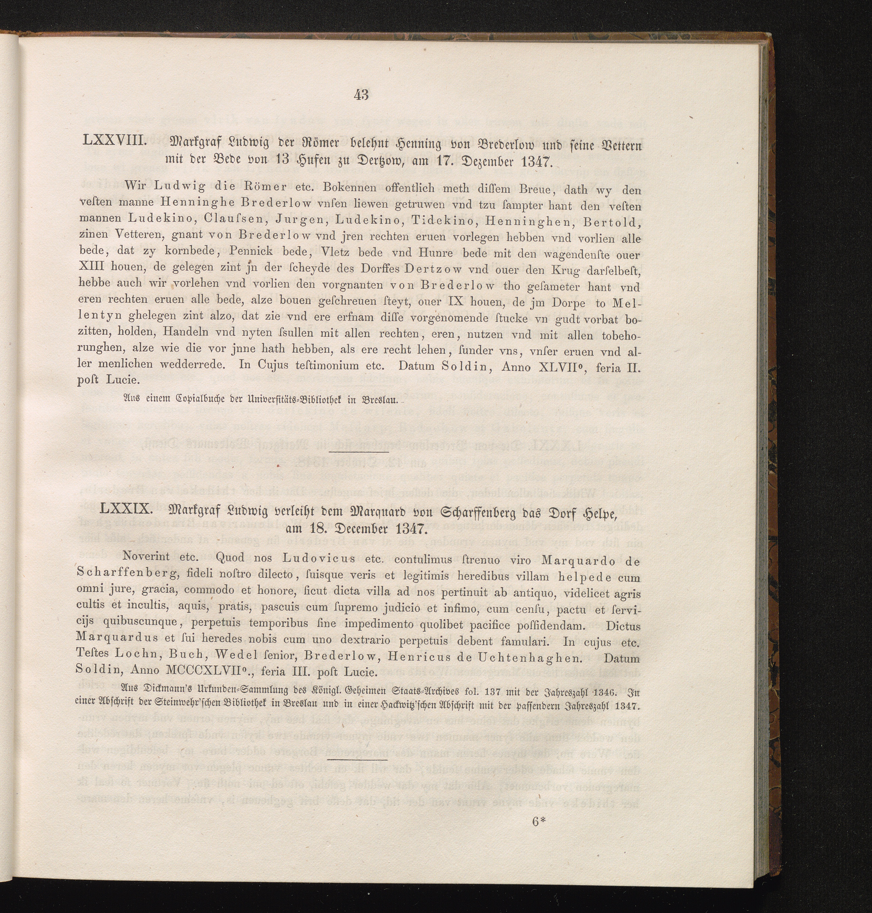LXXIX. Markgraf Ludwig verleiht dem Marquard von Scharffenberg das Dorf Helpe, am[...]