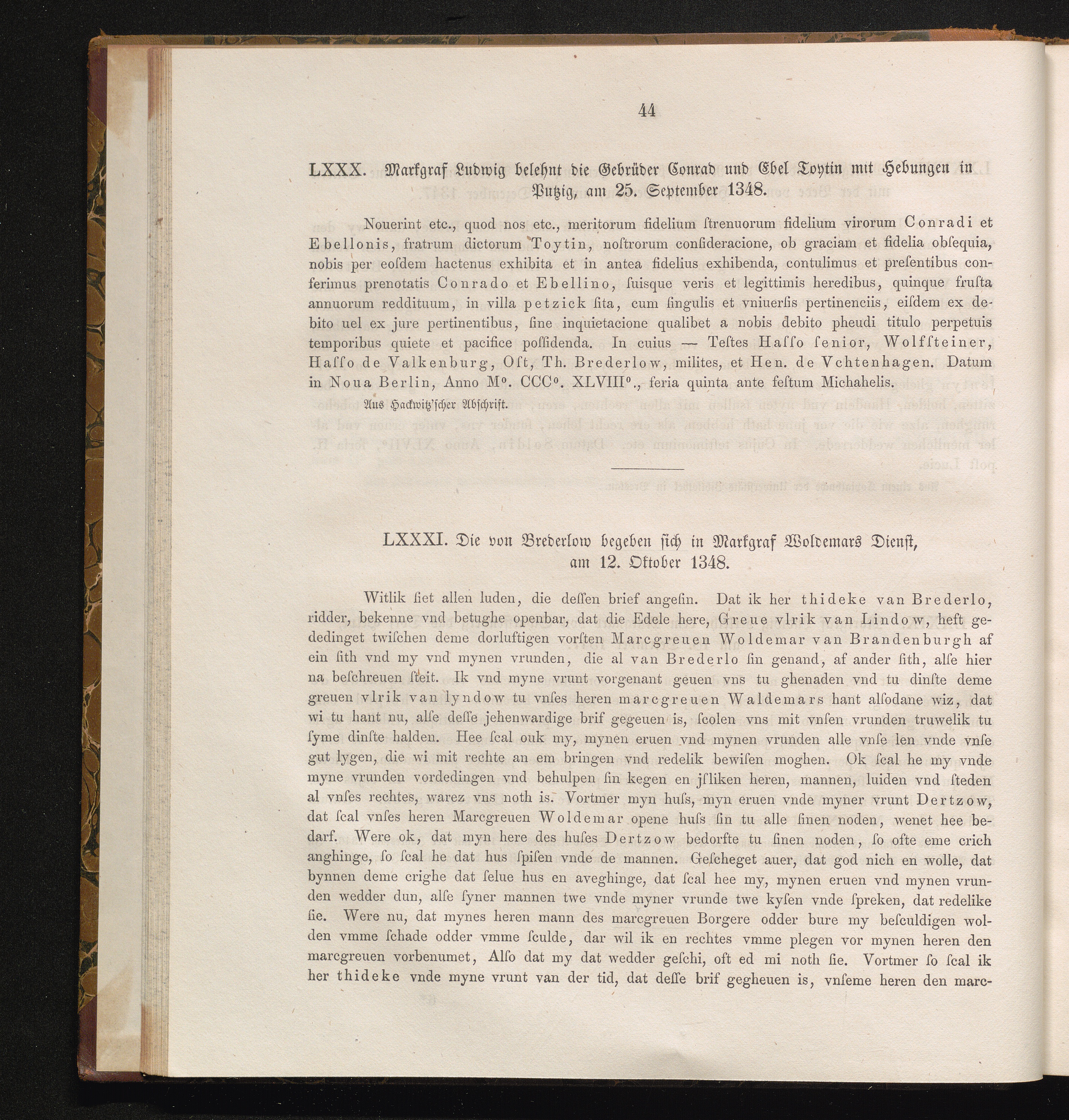 LXXXI. Die von Brederlow begeben sich in Markgraf Woldemars Dienst, am 12. Oktober[...]
