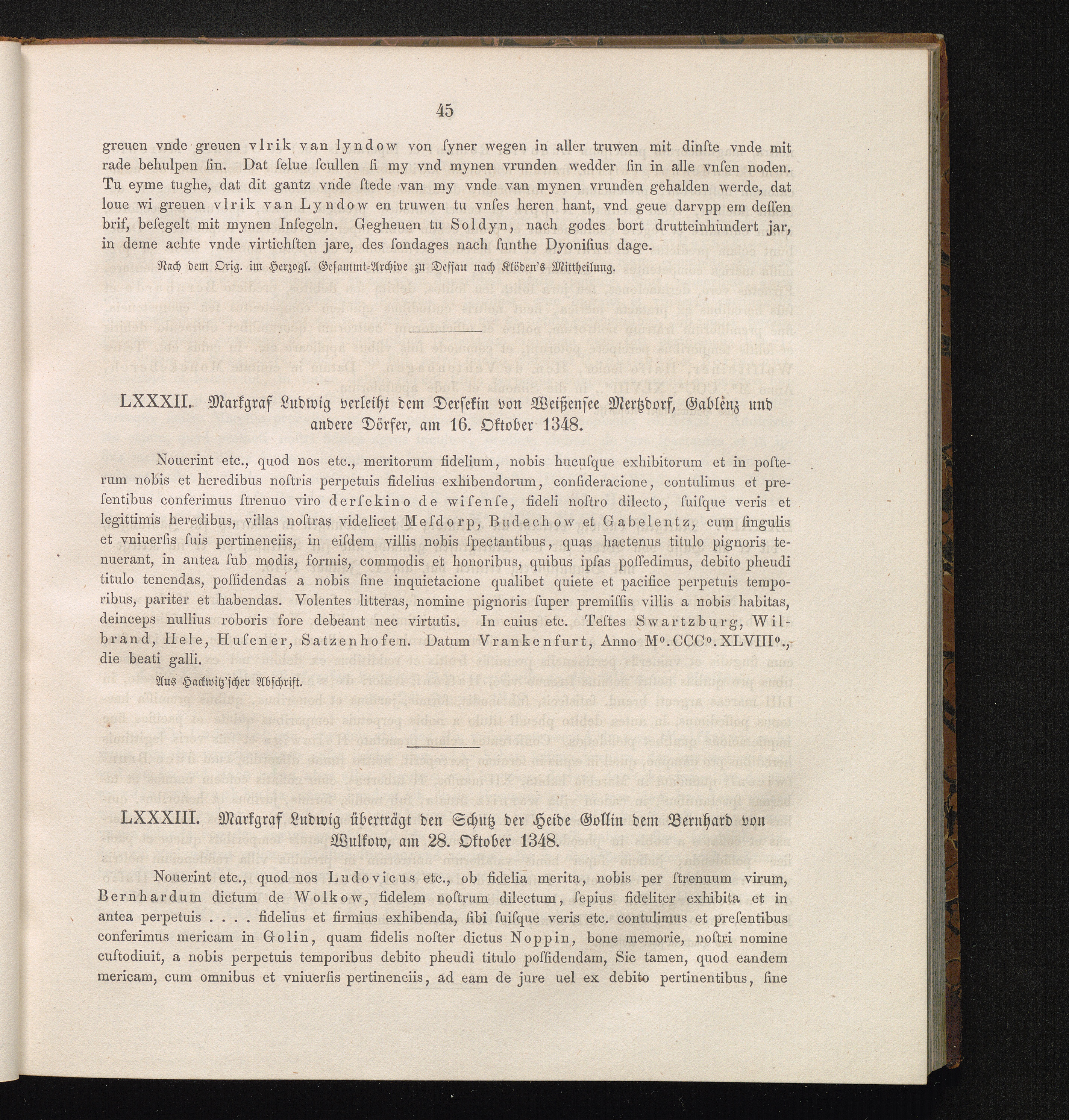 LXXXIII. Markgraf Ludwig überträgt den Schutz der Heide Gollin dem Bernhard von Wulkow,[...]