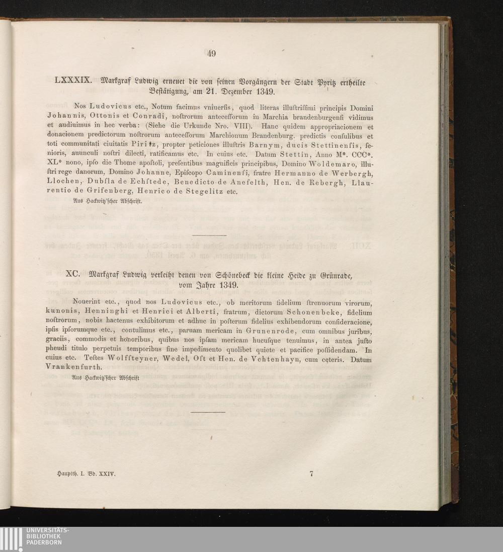 XC. Markgraf Ludwig verleiht denen von Schönebeck die kleine Heide zu Grünrade, vom[...]