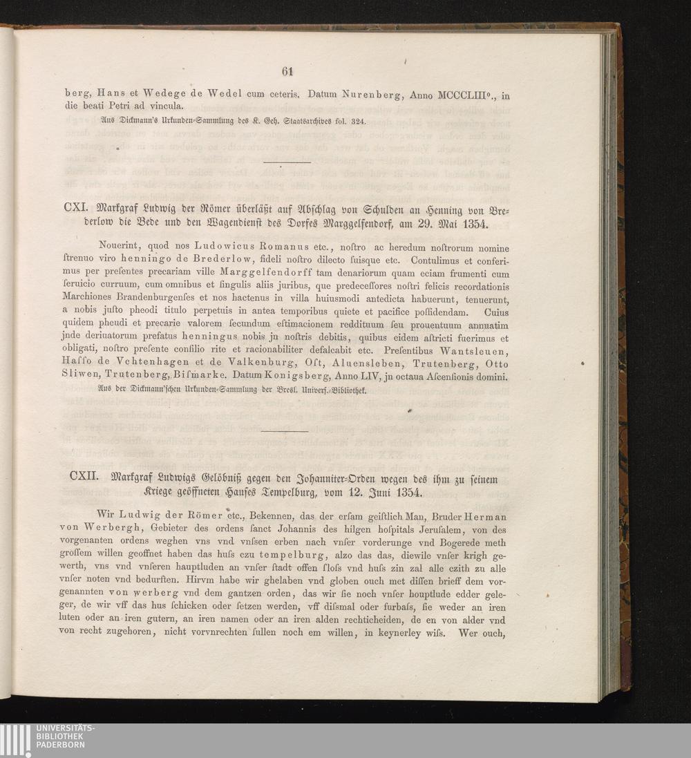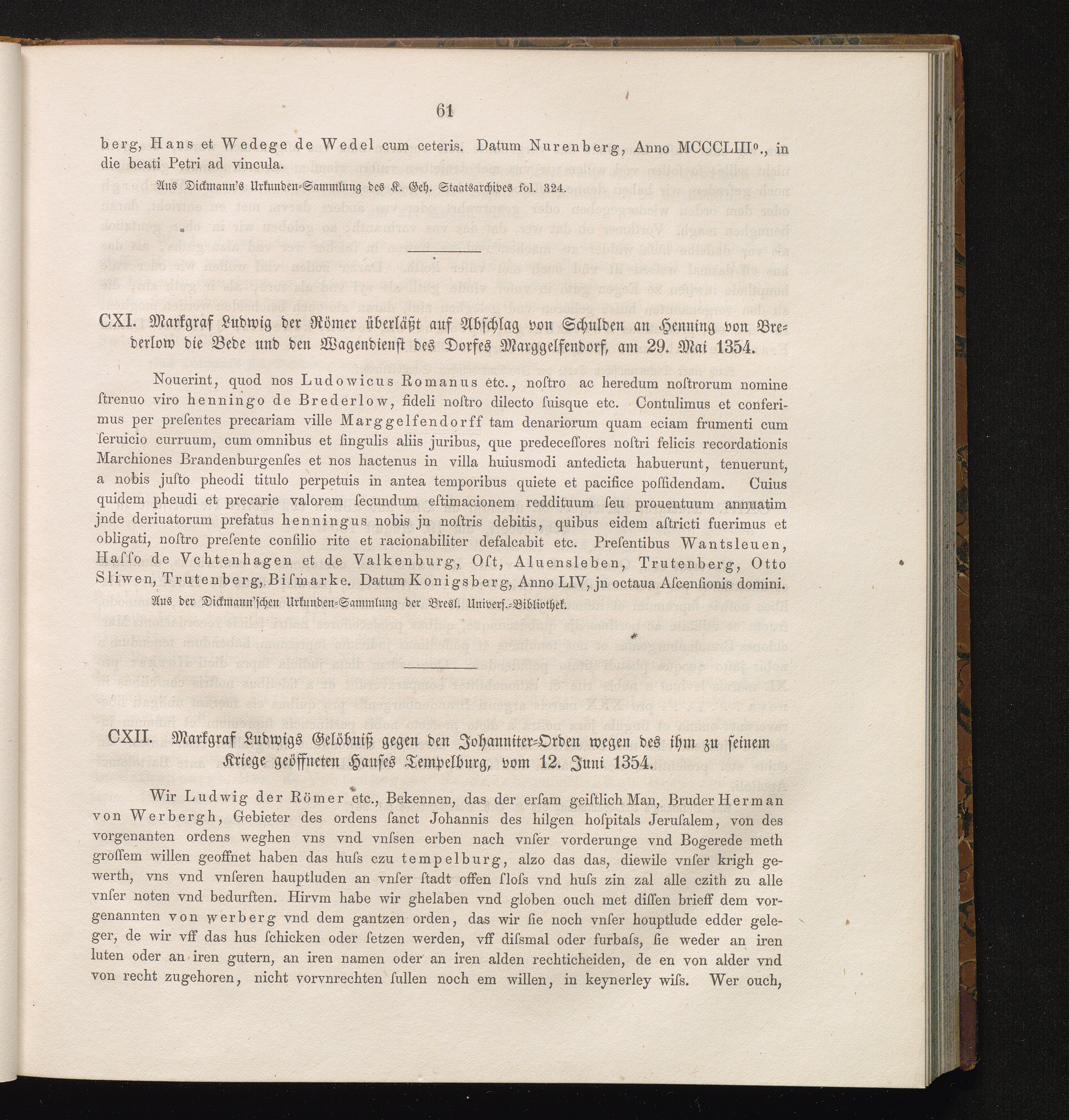 CXII. Markgraf Ludwigs Gelöbniß gegen den Johanniter-Orden wegen des ihm zu seniem[...]