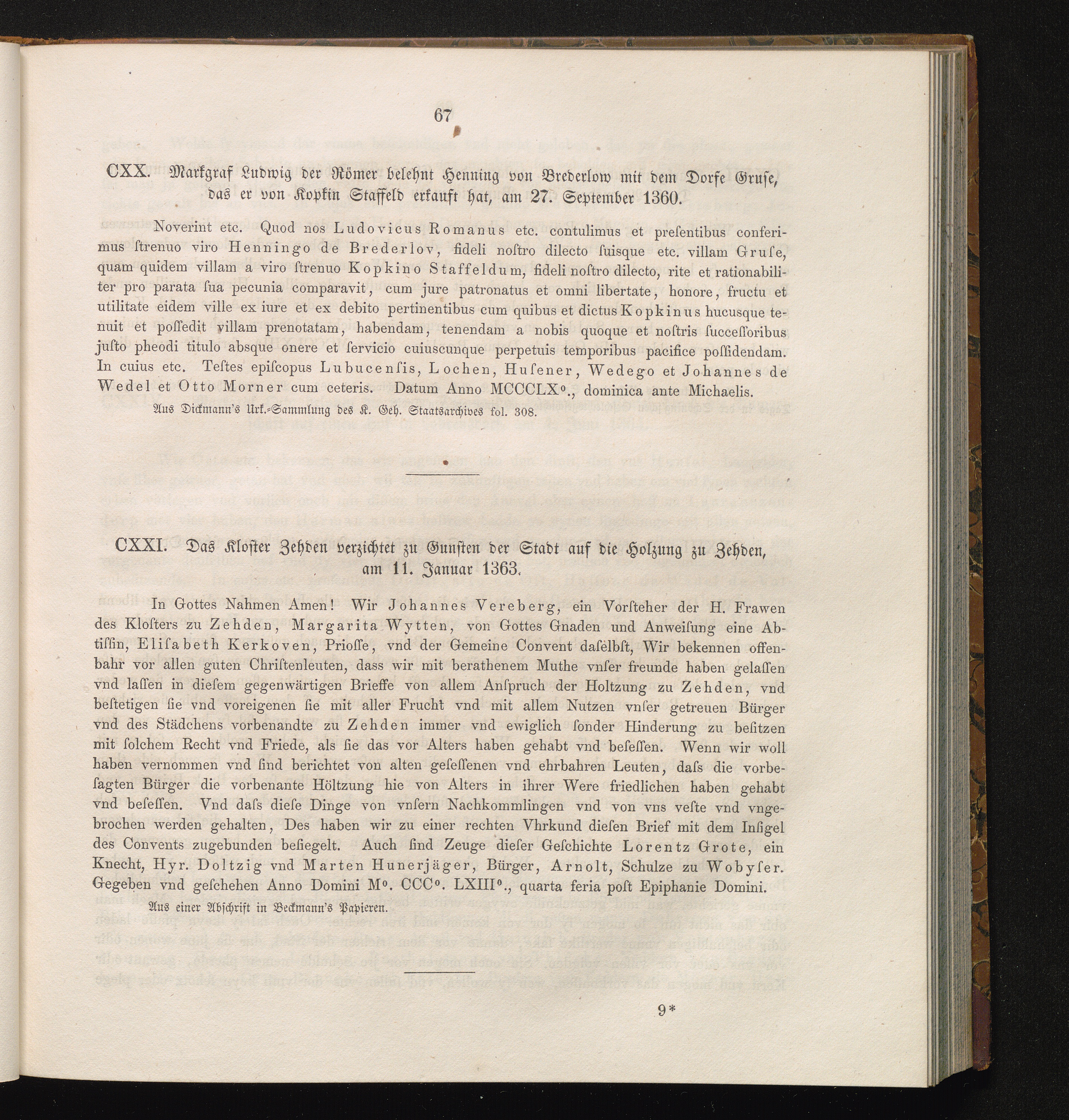 CXXI. Das Kloster Zehden verzichtet zu Gunsten der Stadt auf die Holzung zu Zehden,[...]