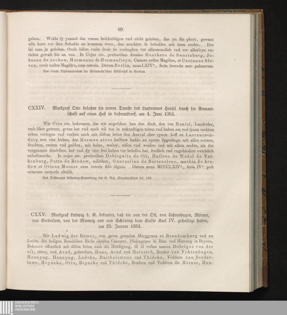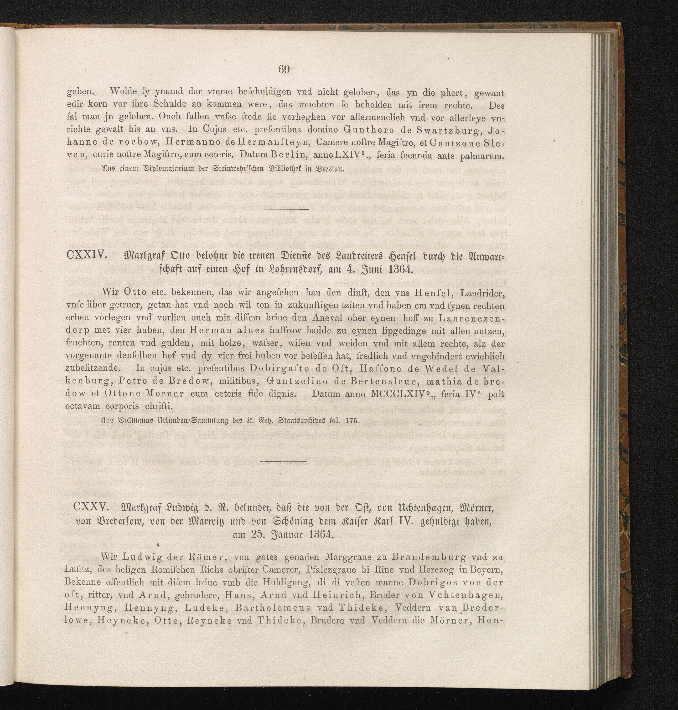 CXXV. Markgraf Ludwig d. R. bekundet, daß die von der Ost, von Uchtenhagen, Mörner,[...]