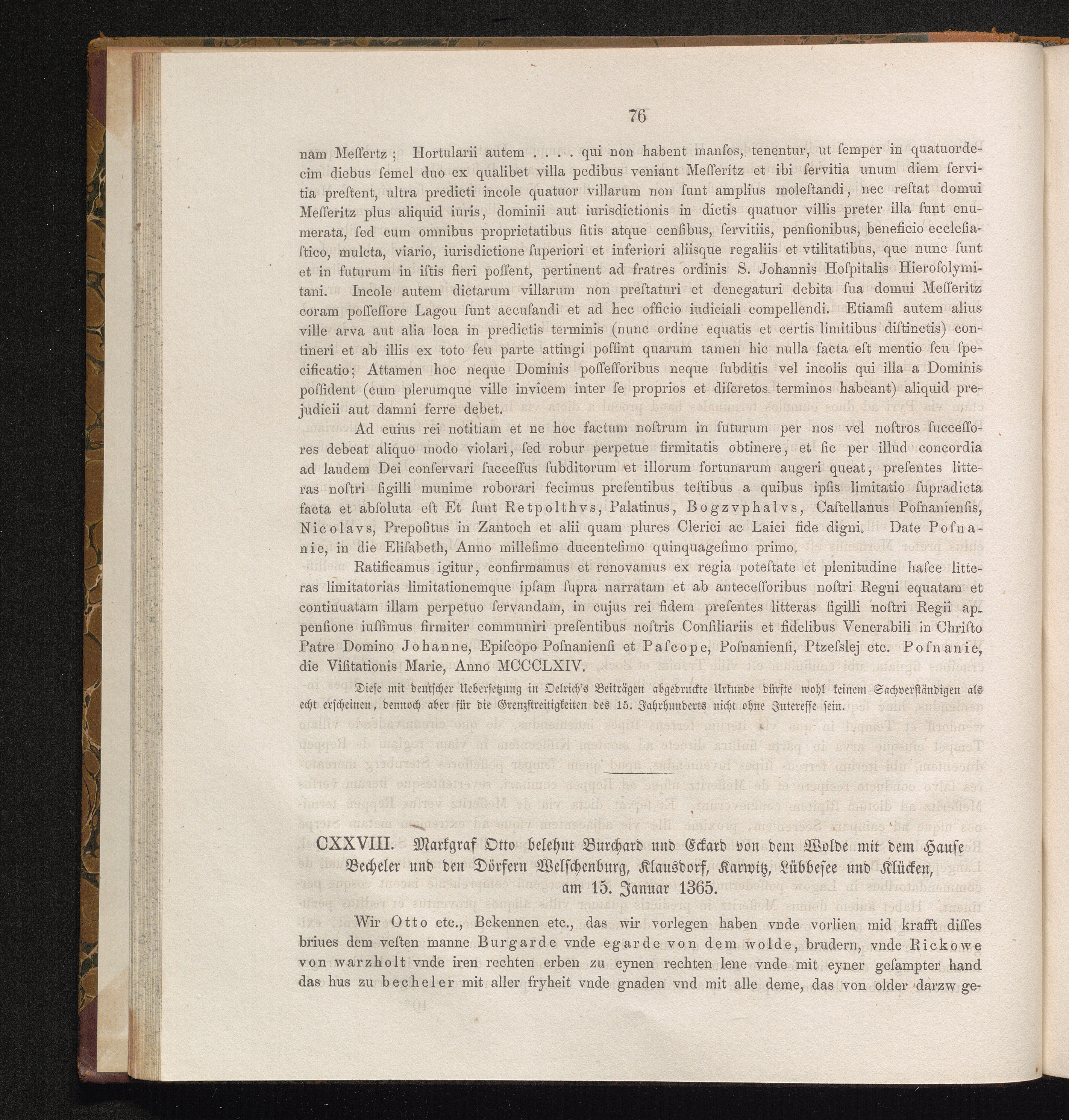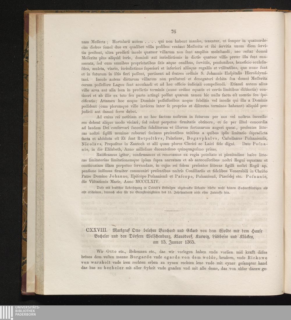 CXXVIII. Markgraf Otto belehnt Burchard und Eckard von dem Wolde mit dem Hause Becheler[...]