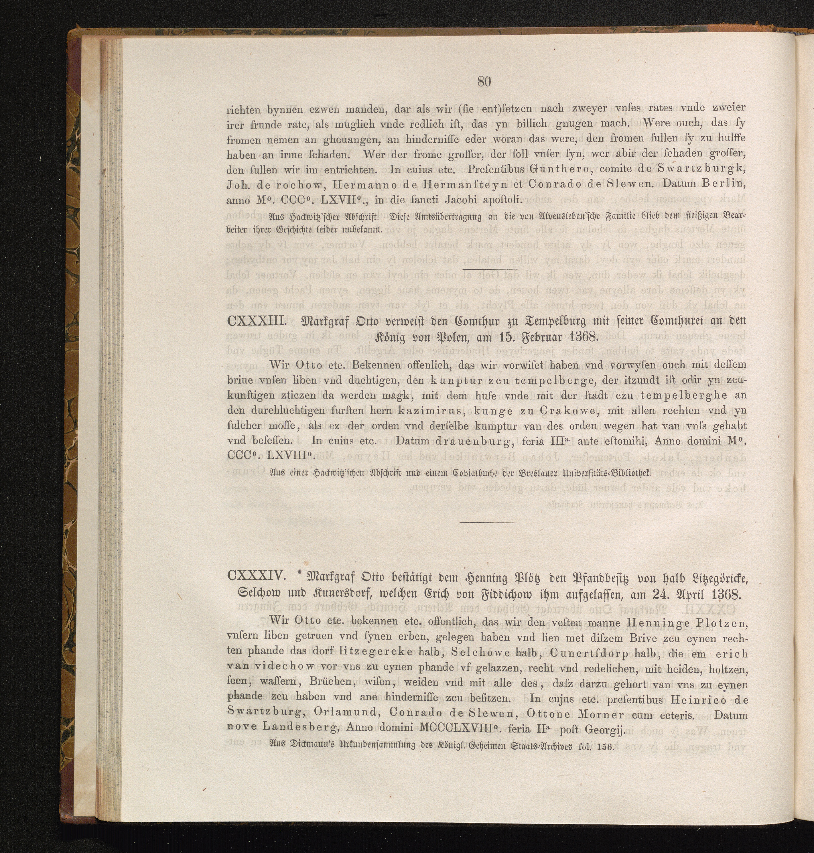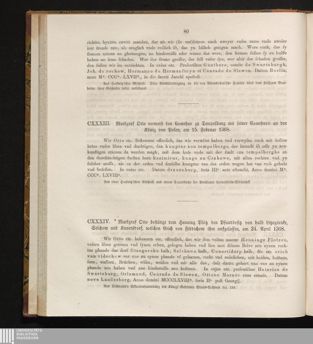 CXXXIV. Markgraf Otto bestätigt dem Henning Plötz den Pfandbesitz von halb Litzegöricke,[...]