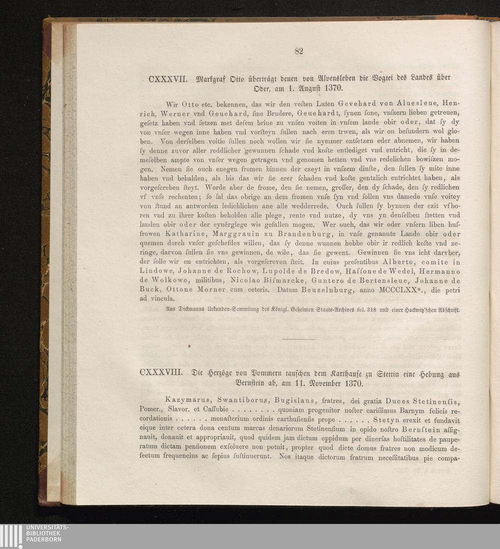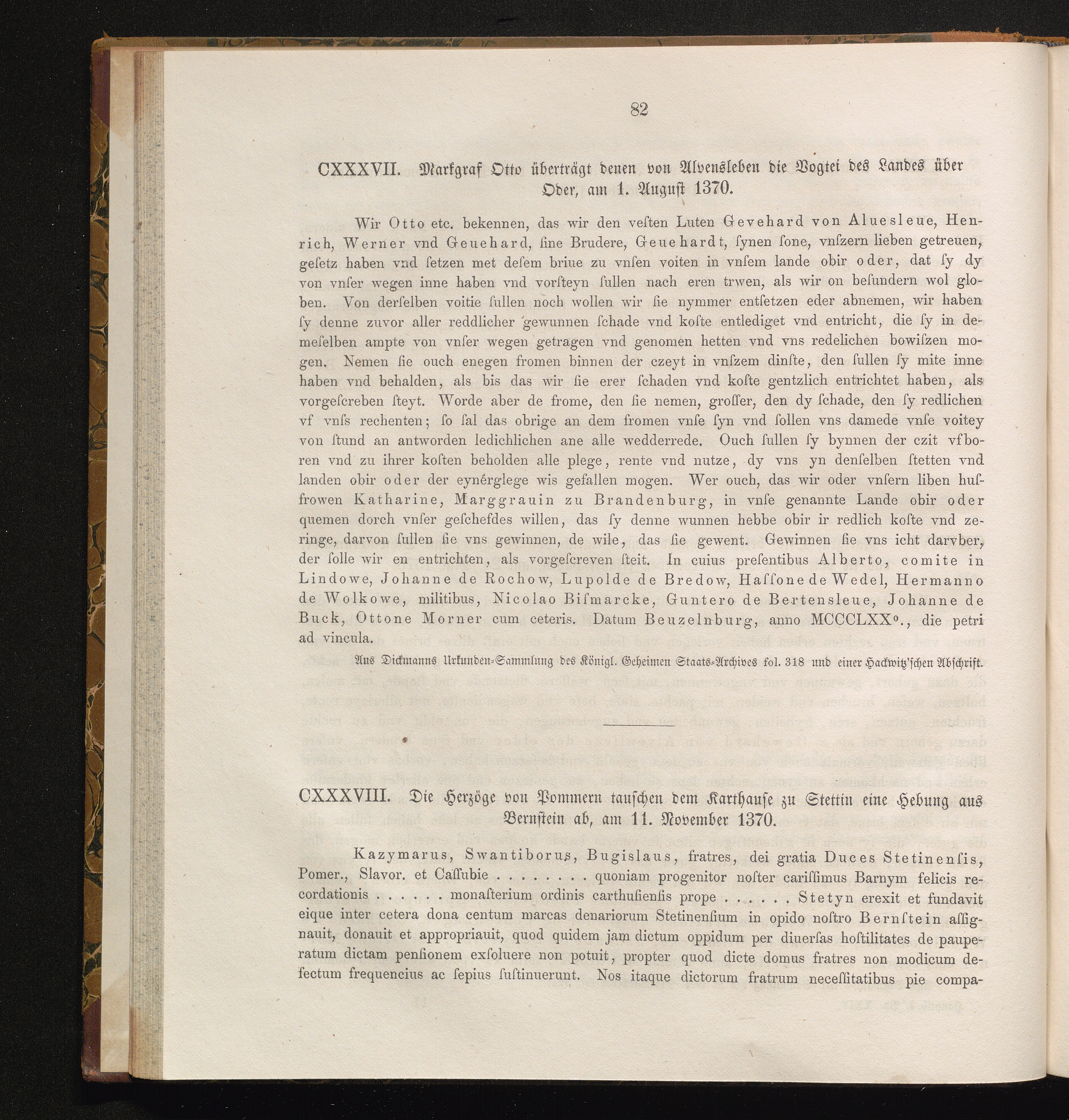 CXXXVIII. Die Herzöge von Pommern tauschen dem Karthause zu Stettin eine Hebung aus[...]