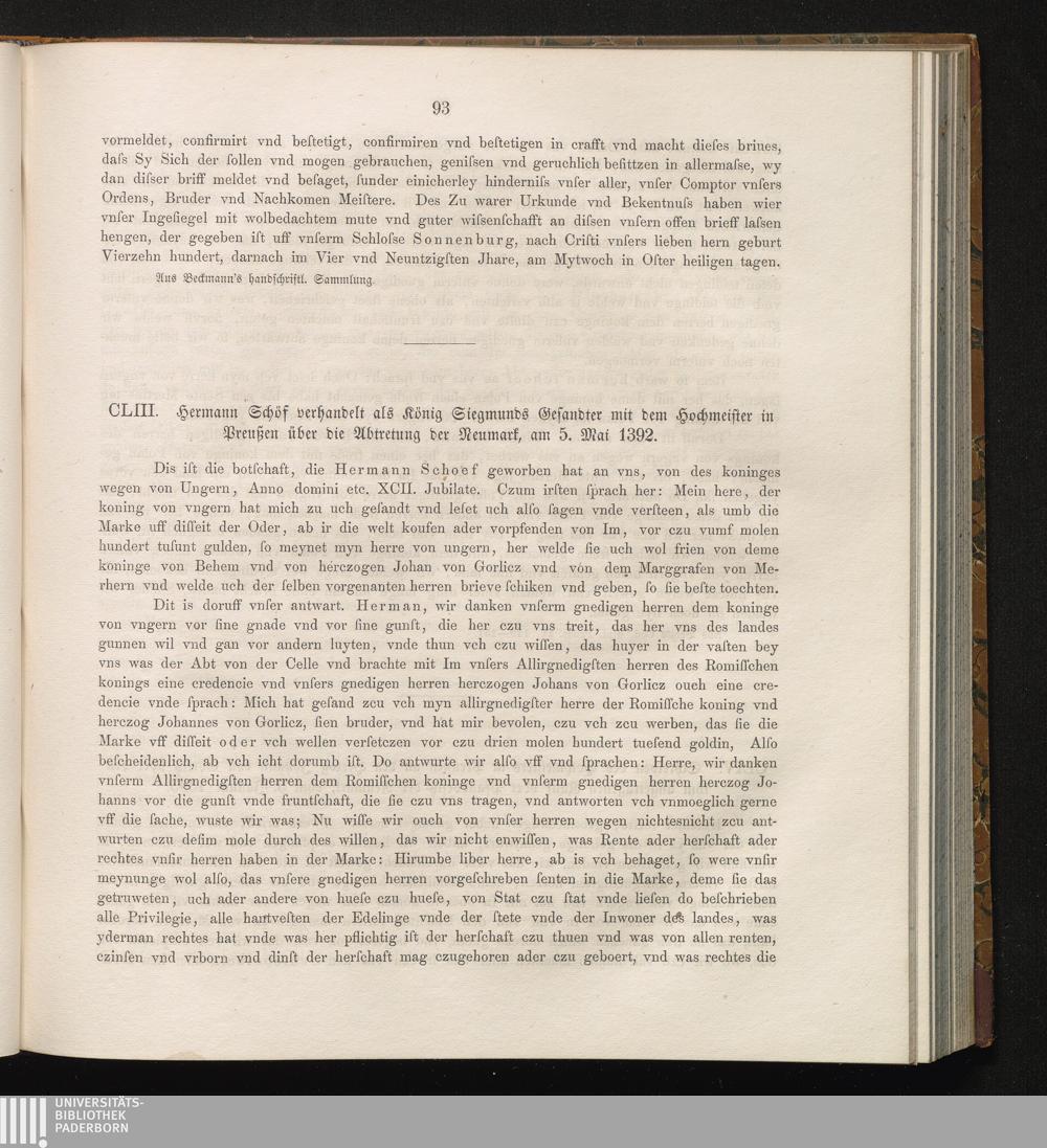 CLIII. Hermann Schöf verhandelt als König Siegmunds Gesandter mit dem Hochmeister[...]