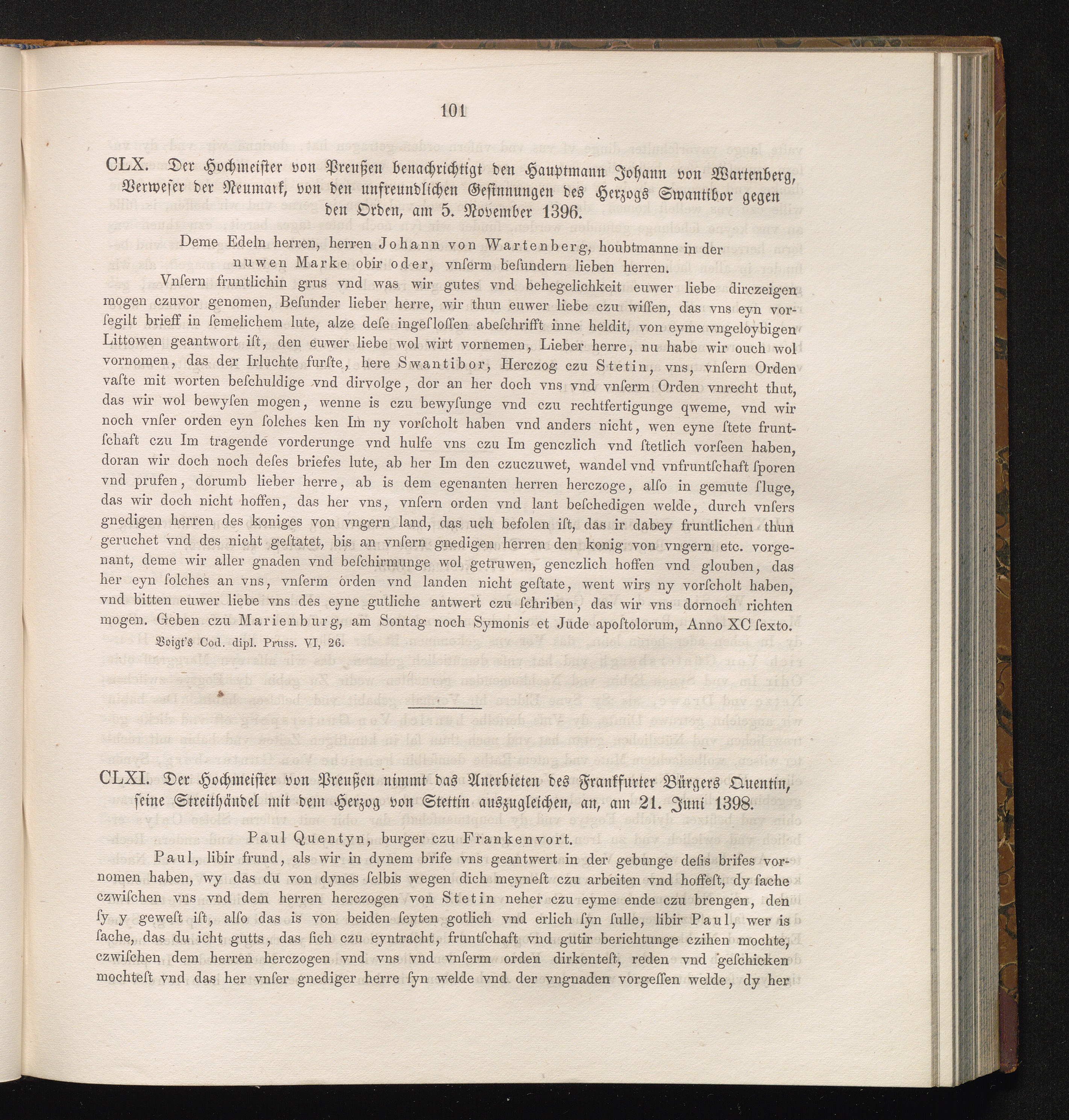 CLXI. Der Hochmeister von Preußen nimmt das Anerbieten des Frankfurter Bürgers Quentin,[...]