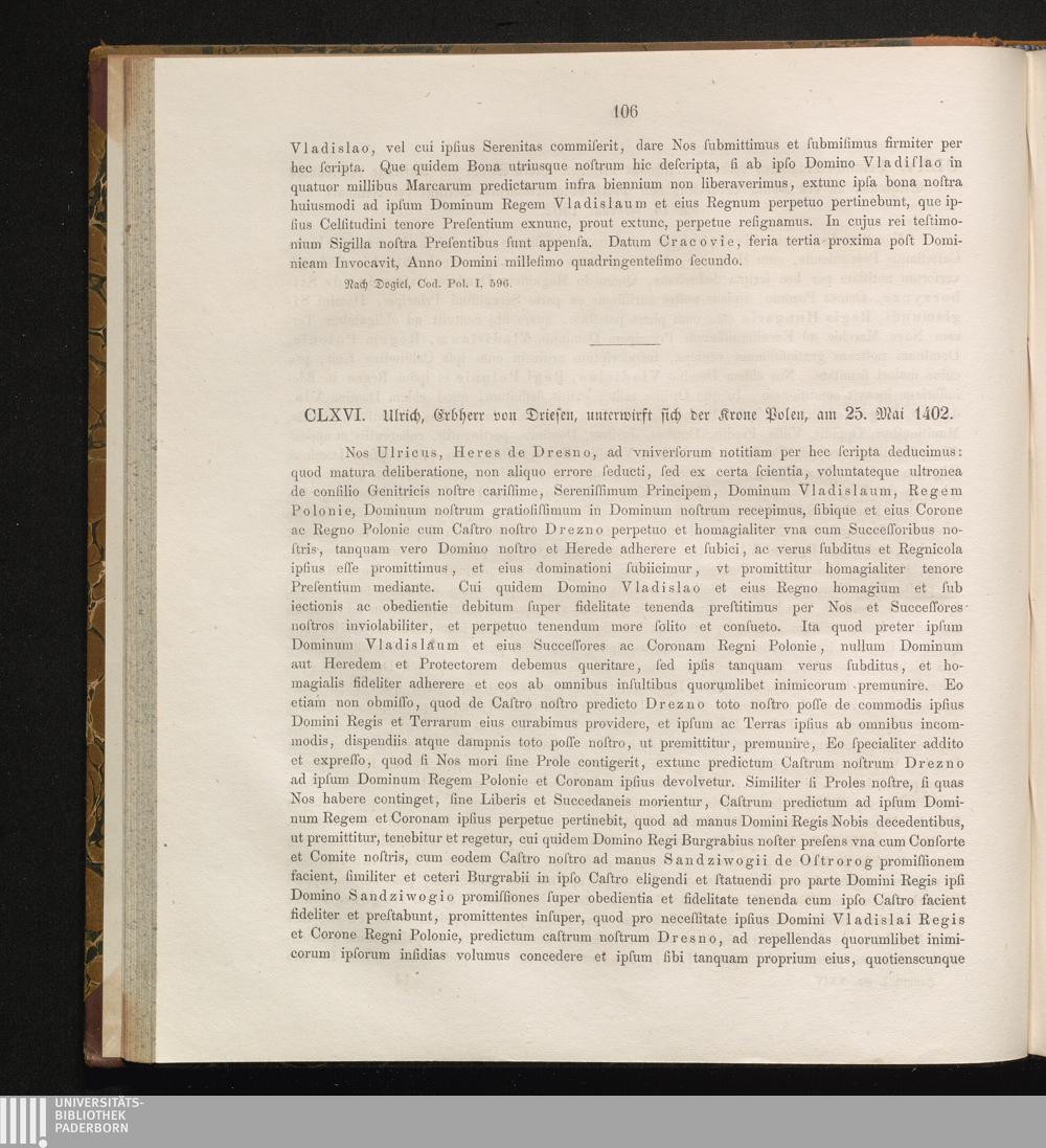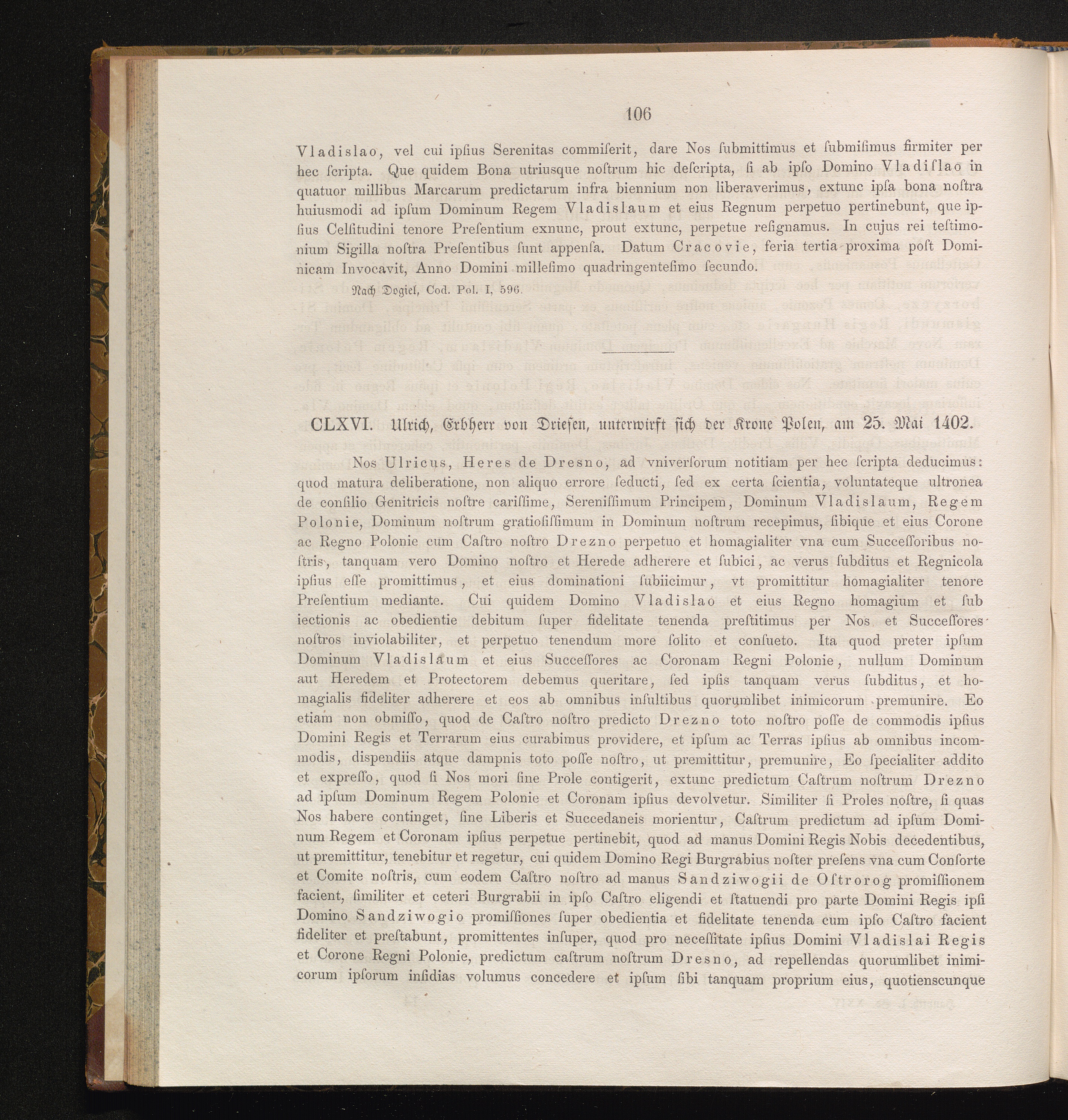 CLXVI. Ulrich, Erbherr von Driesen, unterwirft sich der Krone Polen, am 25. Mai [...]